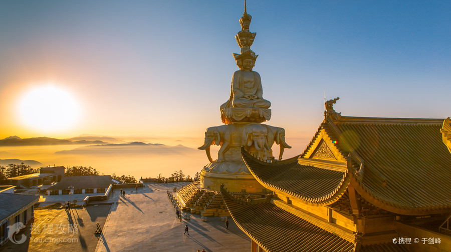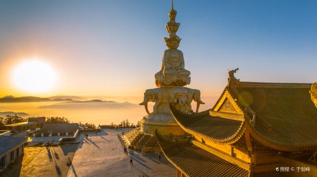 金顶是峨眉山的山顶,金顶上的四面十方普贤菩萨金像,是众多游客来峨眉山的必体验之地。这里海拔3079米,除了高达48米的铜制十方普贤像外,金顶还有一座华严寺,可供祈福。金顶的四面十方普贤金像是世界上较高的金佛,也是普贤菩萨的第一个四面十方艺术造型。普贤菩萨像后边的华严寺有三座大殿,其中的第三殿是普贤殿,也叫金殿或者“金顶”,是峨眉山较高的殿堂,殿门的匾额有“金顶”、“行愿无尽”、“华藏庄严”等牌匾,殿内供奉“普贤骑象”的铜像。公告