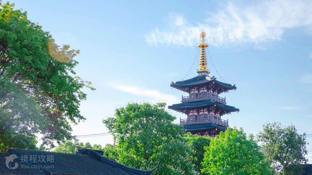 寒山寺位于苏州西郊,已有一千四百多年的历史,因唐代诗人张继的名诗《枫桥夜泊》中“姑苏城外寒山寺、夜半钟声到客船”一句而闻名天下。寒山寺是有名的祈福胜地,每天来寺中撞钟进香、祈求平安的信徒络绎不绝。 寒山寺主要由大雄宝殿、钟楼、碑廊、藏经楼等建筑组成。大雄宝殿内高大的须弥座以汉白玉雕筑,座上安奉释迦牟尼佛金身佛像,两侧靠墙供奉着明代成化年间铸造的十八尊精铁鎏金罗汉像,是由佛教圣地五台山移置于此。在碑廊可见到“江南四大才子”中的文征明、唐寅所书碑文的残片,还有岳飞、康有为等名人的诗碑,而清末知名学者俞樾书写的诗碑《枫桥夜泊》更是寒山寺中的经典。 寺内的钟楼便是“夜半钟声”的来源之处,宏亮悠扬的钟声是寒山寺的象征。每年十二月三十一日,寒山寺都会举行跨年敲钟仪式,钟敲108下,寓意来年烦恼随之消去。如今的大钟虽已非唐诗中的那口钟、而是晚清的古迹,但却是需三人才能合抱的罕见巨钟。