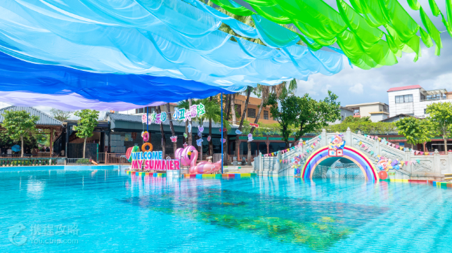 2023年宝墨园汉风古韵樱花节浪漫来袭,湖光山色、灿烂樱花、园林古建、汉服佳人,满园樱花和古典建筑相映成辉,畅享小桥流水赏樱花的园林意趣!在宝墨园,一隅古建搭配满园樱花,随手一拍就是中国风赏樱大片,这是宝墨园樱花节无可比拟的独特优势。 宝墨园门前就有两幅工艺精湛的民间砖雕,分别为包拯怒铡陈世美与包勉的故事。园内还有大量的灰雕、石雕、陶塑和紫檀木雕,以及传统宫灯。 特别的是瓷塑浮雕《清明上河图》和巨幅砖雕《吐艳和鸣壁》。 一进门的大影壁,就是《吐艳和鸣壁》,取百花吐艳,百鸟和鸣之意。图上的图案有极富岭南特色的芭蕉、振翅飞翔的凤凰、各种动物,形态栩栩如生,画面布局和谐,整幅画立体感非常强。而大型彩绘浮雕瓷壁画《清明上河图》,则是宝墨园的镇园之宝,已经列入吉尼斯大世界纪录。 除外,宝墨园还是一座博物馆,较亮眼的是赵泰来艺术宫和宝墨园-赵泰来藏品馆。艺术宫内,有赵先生捐的1600件藏品,包括木雕、青铜器、古玉等。藏品馆中,则是各种字画。 作为一个公园,园内种植的植物也很多,还栽植有大量的岭南盆景。除了树木花卉和建筑之外,园内还有龟池、宝墨园-放生池、锦鲤池、莲池等,锦鲤池内有非常多的锦鲤,而莲池夏天会开满荷花。风味食街则可以品尝到番禺特产小吃姜撞奶、鱼皮饺等,别有一番风味。 “荷花胜境”位于宝墨园东面,与逍遥岛景区紧密相连。荷花池面积1000多平方米,每年种植两造荷花,夏荷过后,别具特色的秋荷又登场。池中央矗立着一尊金光灿灿的观音坐像,一条几百米长、顶上种满各种花卉的回廊环绕荷花胜境凌空飞架。公告