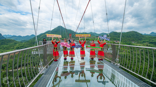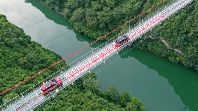 擎天玻璃桥,位于广东省连州地区境内的湟川三峡——龙潭度假区(国家AAAA级旅游景区)内,具有跨度大、桥面宽、重量轻和梁高低等特点,是一座全透明玻璃的景观桥梁,兼具景区行人通行、游览、蹦极、溜索、T台等多项综合功能。 这条建造在秦汉古道水路上玻璃桥,横跨湟川三峡陡崖峭壁,尽览粤北大瀑布群,凭借别出心裁的结构和超凡脱俗的外观,已成为连州市高速创造“历史文化之旅、自然景观之旅、国际通道之旅”的标志性建筑。擎天玻璃桥在万丈悬崖与流泉飞瀑间凌空而建,悬浮于湟川三峡的绝壁和深潭之上,与周边环境相互融合,气势磅礴而又和谐统一。远观宛如一条昂首云天、腾云驾雾的巨龙,飞越大峡谷的陡崖峭壁,若隐若现穿行在湟川三峡的烟雨云雾之中。桥身的颜色选用了千年流传的中国红,这不仅是中华民族喜爱的颜色,还是中国人的文化图腾和精神皈依,中国红的色调使整座桥在湟川三峡谷中常见的云雾缭绕里显得更加惊艳醒目。 擎天玻璃桥全长为526.14米,是一座大型山谷单跨悬索桥,现场施工采用全预制进口螺栓连接,既保证了项目的安全性,结构的稳定性,又提升了观赏的刺激感。整座玻璃桥通体采用3层4.5厘米厚度的进口超白夹胶玻璃,这种超白玻璃的透光率为99.15%,其水晶般的光泽、高清晰的亮度、超高的光折射率,无不让游客的视野更加明亮、观景更加通透、观感更加刺激。桥梁两侧采用竖向圆弧形不锈钢护栏,让游客在玻璃桥上360°览景拍摄的同时保障安全。 设计师赋予了擎天玻璃桥许多关于爱情的元素,从踏上这座玻璃桥起便开始了一场浪漫的旅程,点睛之笔就是桥面渐变成4个互相对称的“心心相印”超宽观景平台,可同时容纳1000人,仿佛等待着情侣们的山盟海誓和赤子们的追梦之心,每个“心”型平台宽13米,长14米,寓意着“一生一世”。 漫步空中玻璃天桥,俯视脚下数十道飞瀑悬空落河、喷然若雾,两岸峡深壁陡、直如刀削,悬崖耸峙在阳光的辉映下如七彩霓虹,美伦美奂。置身超俗的诗画走廊,却步履凌空心惊胆战,这种“眼睛在天堂,身体在地狱”的奇幻之旅,适合与恋人携手并进,考验彼此间爱的勇气。下山时,临水曲折的古栈道沿途设有多个拍摄位置,是情侣和家庭游玩打卡必到之处,终点是被誉为“浪漫终点站”的桃花岛。 这条横亘在湟川三峡上的“红色巨龙”,氤氲着古色古香的秦汉气息,延续着盛世气派的唐宋遗风,沿袭着灿烂辉煌的魏晋脉络,流转着独领风骚的元明清神韵,以其丰富的文化内涵,在两端桥塔上盘成错综复杂的中国结,高度概括着龙的传人生生不息的历史,同时也代表着“吉祥如意”和“团圆兴旺”。公告