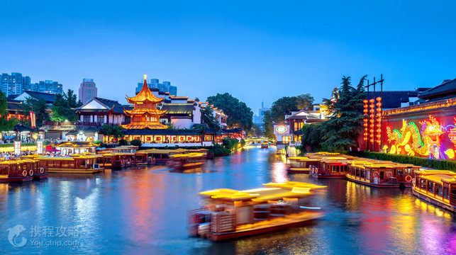 夫子庙始建于宋代,位于秦淮河北岸的秦淮河-贡院街旁,原是祀奉孔子的地方,后多次遭毁并重建。它与北京孔庙、曲阜孔庙、吉林文庙并称为中国四大文庙,也是夫子庙秦淮风光带主要的景点。 民间艺术大观园 夫子庙里有一个民间艺术大观园,你可以观看现场制作灯彩、剪纸、微雕等工艺品,听地方戏曲和南京白局。进夫子庙时可以留意一下演出时间表,演出时长约10分钟。 春节灯会 每年春节至元宵节期间夫子庙都会举行春节灯会(又称秦淮灯会、金陵灯会),尤其元宵节时万灯齐明,游人如海。此外,夫子庙也不时地举办“雨花石展”、“古代礼仪文化展”、“古代雅乐表演”等展演活动,十分热闹。 夫子庙建筑布局 整个夫子庙建筑群前面是文庙,后面为学宫,布局左右对称,自南向北构成一个儒学文化中轴线。迈过棂星门和大成门,就是中心庙院。石砌甬道直通大成殿,殿前立着一尊4米多高的孔子青铜像,甬道两旁有十二贤人的汉白玉塑像。 大成殿 大成殿是夫子庙的主殿,里面悬挂着一幅6米多高的孔子画像,被称为中国孔庙一大杰作。大殿四壁上是38幅彩石镶嵌壁画《孔子圣迹图》,反映了孔子的生平事迹。 民间艺术大观园 从大成殿后门走出就到了夫子庙-学宫,包括夫子庙-明德堂、夫子庙-尊经阁(即民间艺术大观园)等。大门上有清末状元秦大士题写的“东南第一学”门匾。夫子庙-学宫南侧矗立着四块石碑,其中《孔子问礼图碑》尤为著名,记载了孔子从家乡去周王城洛阳考察典章制度的经历,可谓“镇庙之宝”。 秦淮河小吃 参观夫子庙之余,自然还要体验一把秦淮河小吃,这一带餐饮店很多,蟹壳黄烧饼、开洋干丝、牛肉锅贴、鸡丝浇面、鸭血粉丝汤等一定要试试。另外,这里的商铺也鳞次栉比,你可以挑选一些价钱实惠又具有秦淮特色的纪念品。