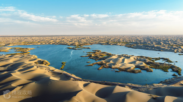 罗布人村寨位于尉犁县西南侧,距离县城车程约35公里,原是罗布人大的村庄之一,如今在原有的基础上修建了很多罗布人特色的建筑,做成一个巨大的、反映罗布人文化的人文旅游区。在这里可以参观罗布人的房屋、祭台等众多建筑,同时还有沙漠、塔里木河、胡杨林风光,可以观景娱乐,是尉犁县重要的景点。罗布人是新疆古老的民族之一,人们都以在塔里木河畔打渔为生。这个民族与其他民族千百年来一直隔绝,有独特的文化和民俗,非常神秘,如今真正的罗布人已经不多,景区便是一个很好地了解神秘罗布人文化的地方。景区的面积很大,刚一进入景区便可以看到周围的沙丘、戈壁风光,游客需要在此乘坐区间车进入村寨。区间车车程不远,一路可以看到很多高大的胡杨树,风光苍凉壮阔。进入村寨后,可以看到罗布人的房屋、婚房、祭台等等极具特色的建筑,了解罗布人的特别民俗,还有当地的罗布人歌舞表演等可以观看。除了了解文化外,景区内的塔里木河、神女湖等都风光优美。在景区的深处是一片沙漠,游客还可以在此体验骑骆驼、沙漠滑翔伞等众多的娱乐项目,沙漠的湖中也可以泛舟划船,趣味十足。公告
