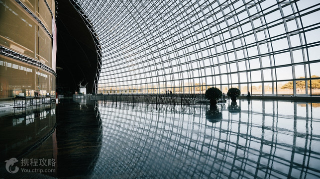 国家大剧院位于天安门广场西侧,建筑呈水滴状,造型新颖,夜晚亮灯时格外漂亮。游客来此可以参观建筑和独特的乐器等,每年4-7月歌剧节观摩期间,还能在公共区间欣赏美妙歌剧。 国家大剧院内部共五层,分别设置有歌剧院、国家大剧院-音乐厅、戏剧场和小剧场。游人可从北门入口进入后,经东西两侧展厅,乘坐直达电梯抵达各演出厅。 歌剧院 歌剧院以华丽辉煌的金色为主色调。主要上演歌剧、舞剧、芭蕾舞及大型文艺演出。值得关注的是歌剧院的品字形舞台,功能齐全,可迅速地切换布景,令人称奇。歌剧院常年上演国内外团体的歌剧、音乐剧等剧目,具体演出安排详见官网。 国家大剧院-音乐厅 国家大剧院-音乐厅洁白肃穆,色调风格宁静、清新而高雅,演出大型交响乐、民乐等音乐演出。国家大剧院-音乐厅内的管风琴造型典雅,音色饱满,栓数多、音管多、音色丰富,可谓“镇厅之宝”。音乐厅建筑在营造声学效果方面下足了本钱,在这里欣赏一场演出,堪称享受。 戏剧场 戏剧场是国家大剧院具有民族特色的剧场,以中国红为主色调,真丝墙面烘托出传统热烈的气氛。主要上演话剧、歌剧、地方戏曲等演出。 小剧场 小剧场是国家大剧院具有多样性的多功能剧场,整体色调清新、风格典雅,可以举办室内乐、小型独奏独唱、小剧场话剧、小剧场歌剧、现代舞等多种艺术门类的演出。 此外,在大剧院北入口东西两侧各有一个面积达1200平方米的展厅,常年举办各种艺术展览,有兴趣的话可来参观游览。