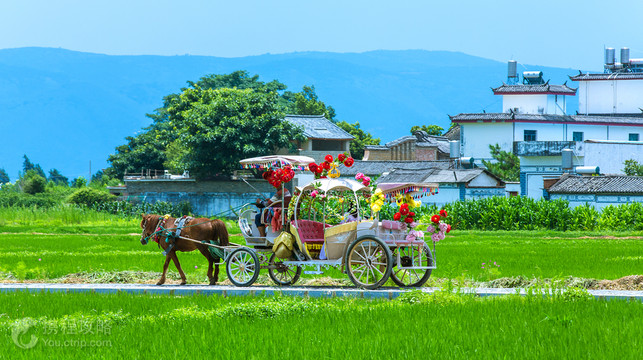 喜洲位于大理古城以北18公里处,西倚苍山,东临洱海,保存有大量的白族民居,也是喜洲粑粑发源地。游走古镇里,看着身着白族服装的老人、卖粑粑的小店、白族民居,满是浓郁的白族风情。喜洲速览正义门是喜洲古镇的西门,从这里进去就是古镇的老街。西门往内几百米处,有一棵500年的大榕树,粗壮得需要几个成年人才能合抱,算是喜洲古镇的标志了。进入古镇不远,有一座紫云山寺,现有的建筑建于清朝,看上去相当破旧,常有一些当地老年人在这里活动,晒太阳。再往内是四方街,这里是由众多店铺围成的小广场,也是整个镇子的中心,游玩喜洲通常从四方街开始。四方街是名小吃喜洲粑粑的原产地,味道很正宗的。看白族民居白族民居是喜洲的一大特色,这里的民居历经各个时期,人们常去参观的即严、杨两家。严家民居位于四方街西南角,建筑是典型的“三坊一照壁”及“四合五天井”的白族庭院格局。严家是旧时喜洲“四大家族”之首,可在此感受严家当年富甲一方的气派。民居内还能欣赏到白族歌舞表演,喝到特色的“三道茶”,如果对建筑和民族文化感兴趣的话,可以购票前往。杨品相宅位于喜洲东边,布局和严家民居大同小异,特别值得一提的是杨家的木雕非常精致,门楼格外华丽飘逸。另外在四方街附近还有一处严家大院,想要快速了解白族民居的可以去看看。游海舌半岛此外,值得一提的是喜洲古镇东面的海舌半岛。往东朝洱海方向走3-4公里,来到海心亭,再往前走数百米到金圭寺,便可以看到见一条约百米宽,一公里左右长的绿洲,好像一支玉簪插入波光荡漾的洱海,当地人称之为海舌。这里游客很少,而且风景非常美,蓝天白云绿树清波,还有出没其中的水鸟,给人融入自然的感觉,拍出来的照片也美得像画一样。游玩建议喜洲离大理古城不远,住在大理古城的话,可以乘车或者骑自行车前往,走走逛逛一天即可来回。也可选择在喜洲住一晚,第二天继续前往蝴蝶泉参观。公告