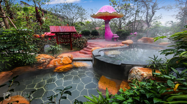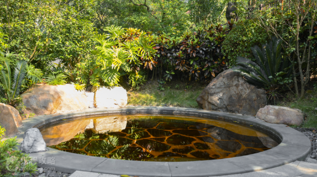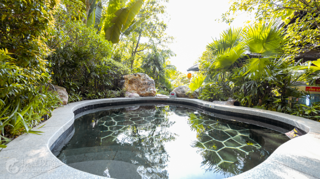 美的鹭湖半山汤谷位于佛山市,呈现浓郁的东南亚风情,46个泡池分为森泉秘谷、动感香疗 梦幻汤谷,倚靠于此,身体浸润在温暖的沐汤中,放眼俯瞰鹭湖、鹭岛美丽的景致,悠然写意,汤谷依山而建,占地四万多平方米,融合了东南亚风情与原生态森林景观,水质细腻。