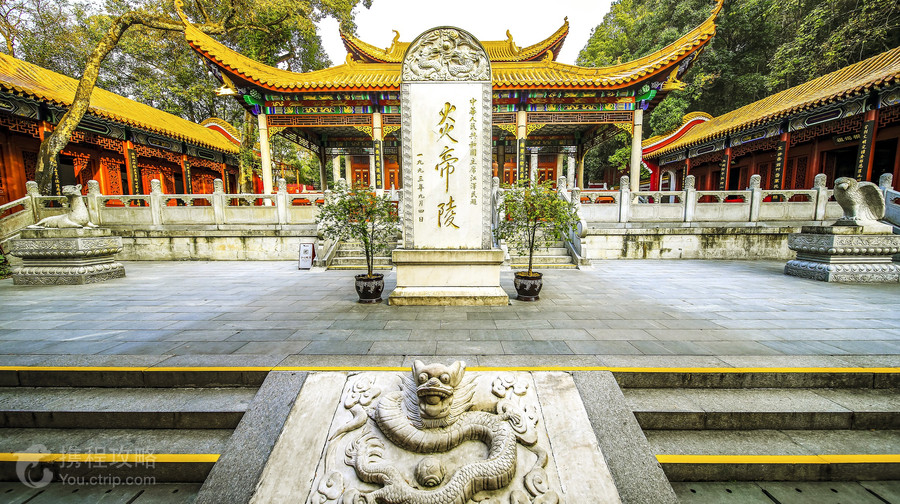 炎帝陵,位于株洲炎陵县,是中华民族始祖炎帝神农氏的寝陵,这里古树参天、景色秀丽。千百年来,陵前的祭祀活动历久不衰,俎豆馨香,终年不绝。炎帝陵包括炎帝陵殿、御碑园、皇山碑林、天使公馆、炎帝陵-圣火台、神农大殿、朝觐广场、圣德林、炎帝陵牌坊、炎帝陵-崇德坊、鹿原陂、龙脑石、炎帝陵-龙爪石、炎帝陵-洗药池等景点,这些景点都分布在南北向的中轴线上。炎帝陵殿炎陵山(又名皇山)西麓,是炎帝陵的主体景点,大殿金瓦红墙,有浓郁的清式建筑风格,庄严肃穆、壮丽堂皇。过午门、行礼亭、陵殿、墓碑亭便是炎帝墓冢,墓前石碑为清道光七年知县沈道宽所书。冢丘碧草茵茵,四周花木郁郁。炎帝作为中华民族的始祖之一,自古以来便得到上起帝王、下至百姓的尊崇和祭奠。对炎帝的祭祀,传说中民间始于夏,官方见于周,帝王起于唐而兴于宋。以后历代皇帝便“三岁一举,率以为常”,每次祭祀完毕即刻御碑以作纪念。景区内除了门票外,拜祭炎帝时所需的香、鞭炮以及景平安果等物品,都需要另外收费。