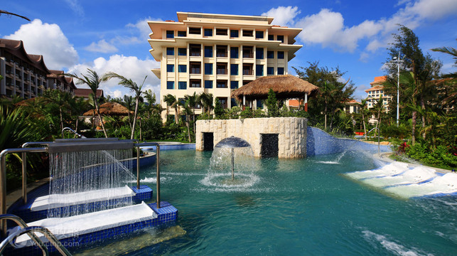 惠东金海湾嘉华度假酒店位于巽寮湾,方便游览天赐白沙提、雄奇磨子石林和红树林,周边是稀缺的白色沙滩和绮丽的热带花园,环境私密安静。酒店内的泡池透着浓郁的东南亚度假风情,整个泡池园区分为四个板块:六福洞天区、揽海养颜区、步浪区、叠海区。漂流河上有慕海、望海、观海、听海四座桥横跨上方,使得各泡池联系紧密又有各自空间。