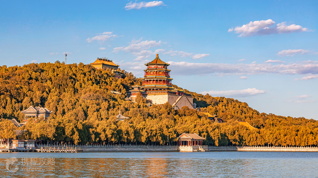 颐和园原是清朝帝王的行宫和花园,又称清漪园,以昆明湖、万寿山为基址,按照江南园林的设计手法建造,是我国现存规模非常大,保存非常完整的皇家园林,景色极具优雅,还有很多珍贵的文物,被誉为“皇家园林博物馆”。区域概览颐和园规模宏大,全园可分3个区域:以仁寿殿为中心的政治活动区;以玉澜堂、乐寿堂为主体的帝后生活区;以长廊沿线、后山、西区为主的苑园游览区。整个园区约四分之三为昆明湖所占据,湖畔有亭、台、楼、阁、廊、榭等建筑物百余座三千余间,其中佛香阁、长廊、石舫、苏州街、十七孔桥等皆为家喻户晓的代表性建筑,也是游览颐和园不可错过的地方。泛舟昆明湖游览颐和园,除了参观金碧辉煌的殿堂建筑,乘坐景区内的游船,泛舟昆明湖上,既轻松惬意,又不误观光赏景。园内有游船码头8个:八方亭、文昌阁、玉澜堂、排云殿、石丈亭、铜牛、石舫和南湖岛,5种不同类型的游船:脚踏船、手划船、电瓶船、龙船和大型画舫。游船价格路线各异,可各取所需。园内餐饮颐和园面积较大,完整的游览完至少要4-5个小时。逛得累了饿了,可以坐下来补充下能量。园内共有三个快餐亭,分别位于知春亭、排云殿东九间和石丈亭处,主要经营日常饭菜和面食,价格相对来说还算公道。如果想要应景儿,园内还有一处专营宫廷御膳的传统饭庄:听鹂馆,在那里可以品尝到具有宫廷风味的食物,不过价格就比日常菜贵一些了。公告