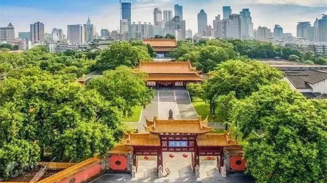 朝天宫是清代的文庙,整个建筑群包括了江宁府学、朝天宫、以及由朝天宫的几间大殿辟成的南京市博物馆。现在江宁府学为江苏省昆剧院,只能外观,游客能入内参观的只有朝天宫和南京市博物馆。 朝天宫的历史 朝天宫的历史可追溯至春秋,吴王夫差在这里的冶山冶铁铸剑,建文庙的历史可追溯至北宋,明代命名为朝天宫,是皇室礼拜道教诸神和学习朝见天子礼仪的场所,后毁于战火,清同治五年至九年(公元1866年-1870年)在原有基础上改建,又成为了文庙,江宁府学也从鸡鸣山迁于此处。 朝天宫 朝天宫南临人工运河“运渎”,有“万仞宫墙”围绕,墙内有一泮池,东西两侧分别为“德配天地”和“道贯古今”牌坊。主体建筑从东南到西北依次为棂星门、大成门、大成殿、崇圣殿,顶覆黄色琉璃瓦,棂星门下的四对团龙雕像栩栩如生,大成门前立着孔子塑像。崇圣殿后是后花园部分,东边的飞云阁附近是乾隆御碑亭,西边的敬一亭是冶山最高处。 南京市博物馆 崇圣殿的一侧是南京市博物馆的主展厅,主要有基本陈列《龙蟠虎踞--南京城市史展》。展品按照时代更迭的顺序排列,一层是远古到明清的展品,二层是民国时期的展品。三层是《玉堂佳器--馆藏精品展》,“镇馆之宝”元末明初的青花梅瓶即在这,瓶上惟妙惟肖地绘着“萧何月下追韩信”图。 南京市博物馆将大成殿和崇圣殿辟为特展和临时展展厅,朝天宫正在举办的展览都会写在门口的牌子上。