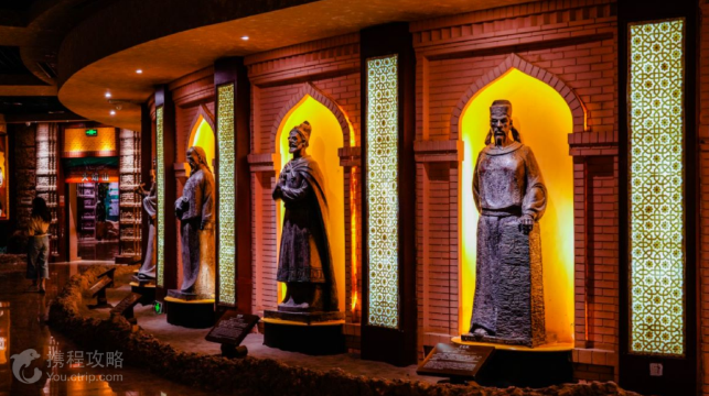 火焰山景区位于吐鲁番市东侧连霍高速旁,距离市区车程约30公里,是一处以火红色的赤褐砂岩地貌为主的景区。这里历史上是高昌古国的所在地,而在传说中,这里是《西游记》唐僧师徒借芭蕉扇用以扇灭大火的火焰山所在地,是很多游客到吐鲁番旅游的好去处。火焰山景区分为地下、地上两个部分,游玩一圈下来大约需要1-2小时左右。一般游客来此都会先前往地下部分,这里是一座长廊式的展厅,展厅的棚顶被设置为天空样子的灯饰,很有特色。展厅内有与高昌古国相关的人物雕像和介绍等,都可以参观一下,了解高昌古国的历史。在展厅里还有纪念品商店和餐吧等,可以根据个人兴趣进入消费。参观完地下景区后即可前往地上部分,地上部分的景观便是火红的岩石和山崖地貌,十分壮观,非常适合拍照。地上的广场上有很多西游记主题的雕塑,还有名为金箍棒的巨大温度计。夏季的火焰山景区天气特别热,温度可高达58度,而且气候十分干燥,此时来此游玩一定是一次特别的体验。但是游玩时要注意多带饮用水,并且要准备遮阳帽、墨镜、头巾等防晒防尘装备,以免中暑。公告