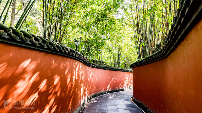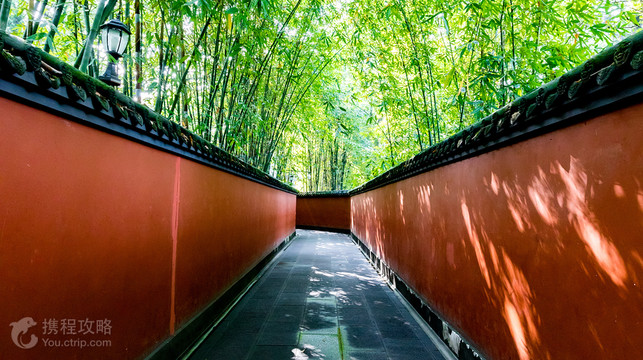 成都武侯祠是纪念刘备、诸葛亮等蜀汉英雄人物庙宇所在。它肇始于蜀汉昭烈帝章武元年(221年)刘备惠陵修建时,在修建惠陵的同时也修建了汉昭烈庙。 约在公元500年前后南北朝时期,武侯祠从成都“少城”迁建惠陵、汉昭烈庙旁,这格局持续到明代。明洪武二十三年(1390年),明蜀献王朱椿到武侯祠朝拜,以“君臣宜为一体”为由,将惠陵、汉昭烈庙、武侯祠合为一体,由于诸葛亮在老百姓心目中的影响超过刘备,民间习惯称为“武侯祠”。 成都武侯祠的文物区主要由惠陵、汉昭烈庙、武侯祠、成都武侯祠博物馆-三义庙等组成,主体建筑为武侯祠。武侯祠分大门、二门、刘备殿、过厅、成都武侯祠博物馆-诸葛亮殿、成都武侯祠博物馆-三义庙等,排列在从南到北的一条中轴线上。祠内供奉刘备、诸葛亮等蜀汉英雄塑像50尊,区域内还有众多的关于诸葛亮和三国文化的碑刻、匾额等。 成都著名的“红墙竹影”,就在景区内,记得拍照哦。 武侯祠的园林区,位于武侯祠西侧,区域内有石牌坊大门、三洞门、四方亭、荐馨堂、墓室等建筑,是西南地区惟一一座北方风格的陵园建筑群。武侯祠毗邻锦里古街(锦里民俗区),可以一并游玩。