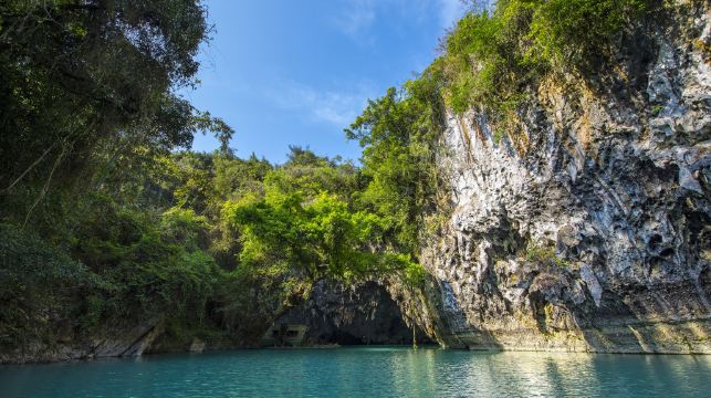 三门海位于广西河池市凤山县袍里乡坡心村,是世界喀斯特地貌典型的核心地带。因发育有三个天窗,由自然通道可乘船入内,使人体会到山中有海、海上有门的神秘感觉,“三门海”因此得名。天窗是喀斯特地貌的新形式。三门海的天窗则有7个之多,7个天窗平行排列呈北斗七星状,其中可通行的有三个。水、洞、天浑然一体,蔚为奇观。是世界罕见的壮丽景象,被国内外专家称之为:世界之窗。三个天窗中,神奇的是第三个,这里冬暖夏凉,温度常年保持22度,入口处的岩石直贴水面,在阳光照射下宛如一块巨大的翡翠,运气好的话还能看到成群的野猴在此嬉戏。公告
