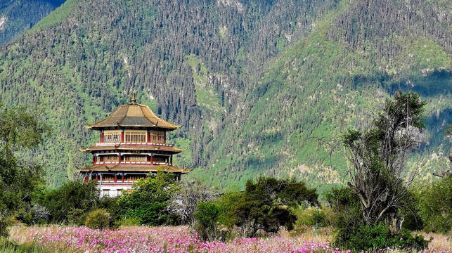 尼洋阁藏东南文化博览园位于八一镇城外,是一处以表现门巴族、珞巴族等藏东南地区独有少数民族文化为主的博物馆。馆内共分为14个展厅,展示了很多有当地特色的文物、生活用品、服饰等,可以来此参观了解。除了参观展厅之外,阁内走到尽头是一处售卖纪念品的地方,感兴趣的话可以挑选。另外,尼洋阁的建筑从外面看是一座很有藏族风格的圆塔,周围环绕着山峦,很有气势。每到夏天格桑花开,结合着建筑和山景很适合摄影。