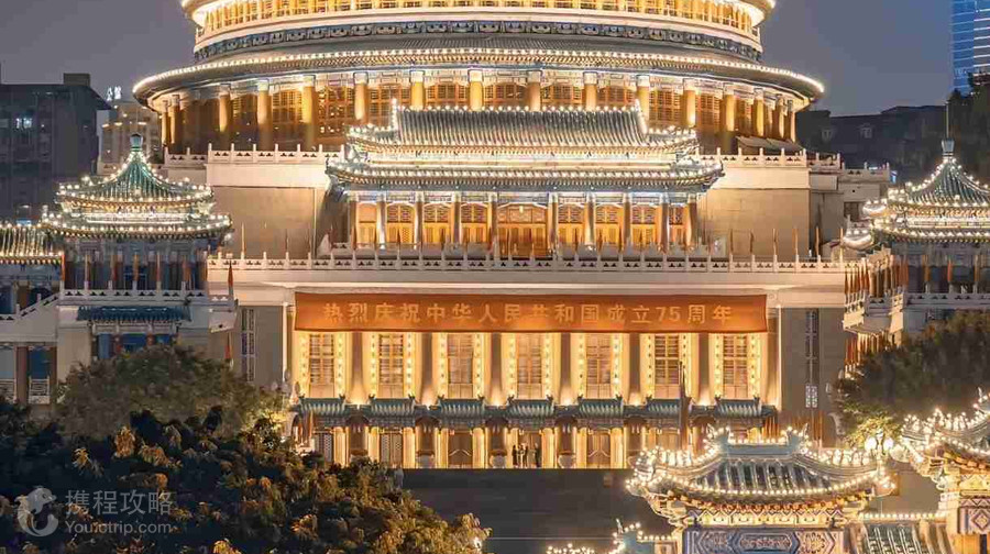 人民大礼堂位于人民路,建于1950年代,是一座精美的仿古民族建筑群,也是重庆的标志建筑物之一。人民大礼堂采用了明清的建筑特色,传统的中轴线对称,在外观上仿造北京天坛祈年殿。人民大礼堂初建设时曾命名为"西南军政大会堂",建成后即正式命名为"西南行政委员会大礼堂",1955年改名"重庆人民大礼堂"至今。人民大礼堂现在是剧院和会议中心,是重庆人代、党代会召开的地方。重庆设立直辖市后,人民大礼堂前改建为有草坪与喷泉的人民广场。夜晚,人民大礼堂在灯光的照耀下,非常漂亮,有很多当地大妈,在礼堂前的广场上跳舞。人民大礼堂对面是三峡博物馆,可以一并游玩。公告