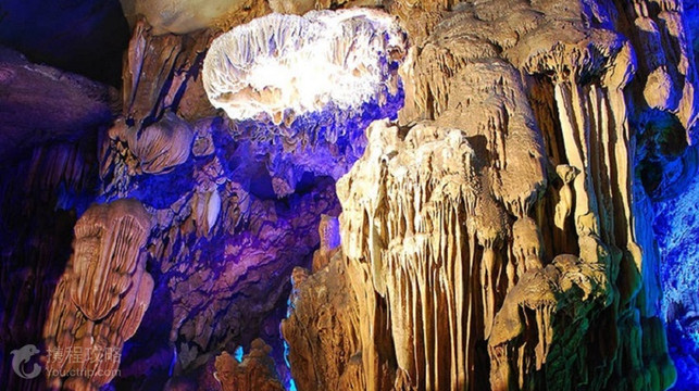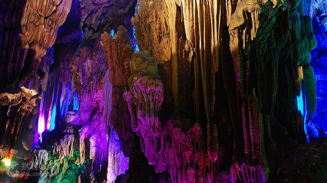 古佛洞天位于韶关与乐昌两市交界处,属大型石灰岩溶洞,洞内石笋丛生,钟乳石林立,上下重叠三层,高处达30米,总面积逾12000多平方米。因其奇石形状独特,酷似仙佛而呼之欲出,所以得名“古佛岩”。岩洞中石花、石柱、石幔不一而足,形态迥异而又色彩斑斓,宛如缤纷画卷。古佛岩中稀罕的当属可追溯至三亿年前的海底珊瑚化石,其形态至今生动可辨,纹路细致,堪称天工神迹。游人如果一路穿过石巷,更可以到达高处的逍遥宫,此处景致层次分明,且愈发富于变化,远处山岳交相掩映,茂林翠竹依山罗列,奇花异草更比比皆是,这来自于大自然的种种视觉震撼,令人叹为观止。公告