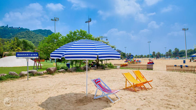 金沙戏水是长三角地区规模较大的以沙滩为主题的户外休闲公园,位于湘湖二期眉山景区,占地面积达34000平方米,由露天泳池、运动沙滩及水上乐园组合而成。露天泳池能够容纳2000余人,总面积近7000平方米,分儿童区、浅水区、深水区。公告