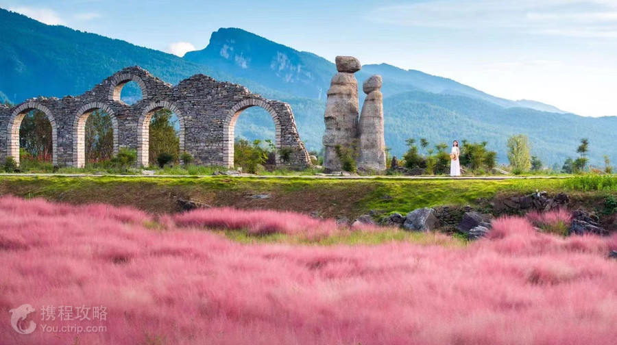 叠石花谷景区是叠石艺术主题园区和巫傩文化展示园区,景区位于酉阳县板溪镇,地跨杉树湾村和扎营村两个行政村,紧邻G65包茂高速,离渝湘高速公路板溪出口,仅仅5分钟车程。叠石花谷景区总占地面积三千余亩,呈“一”字型,从北至南,分为叠石花谷区和中国乡村艺术园。 叠石花谷区是叠石层、叠石艺术和巫傩文化的结合,叠石层产生于距今约5亿年前的寒武纪时期,“雌文化“产生于人类原始宗教形成初期,距今有约1万年的历史。叠石花谷区主要以体验及互动为一体,分别有十二月神柱石阵、叠石魔坑、峡谷滑索景观区、三皇台、巫傩神坛遗址、二十四戏神篝火台等是中国原始文化和浪漫主义手法的巧妙搭配,也是我们从现代社会穿越北纬30度神秘意境的通道。 大量石上莲花,神秘的土家族巫傩图腾文化,浪漫成片的粉黛子花海,置身于此,感受时间流淌的痕迹,聆听艺术呐喊的声音,俯瞰神秘古朴的雕塑、石阵和寒武纪石花,以及匠心独具的艺术装置,感受远古匠人与现代智慧的激烈碰撞,传统人文与现代文明的不期而遇,是景区打卡拍照的好去处。