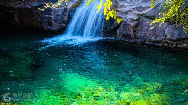 翡翠谷位于黄山市汤口镇东北8公里处,距黄山风景区南大门较近,这里的溪流伴着峡谷,形成了数十个色彩如翡翠一般的水潭和一连串瀑布,溪水两侧竹林摇曳,到黄山若想看水,这里是不错选择。 1986年上海有36位青年男女到当时还未完全开发好的谷内游玩,被困谷中3天,患难见真情,后来有10对结成了终身伴侣,所以翡翠谷又名情人谷。电影《卧虎藏龙》曾在这里取景。 景区南北走向,大门在南端,向北往峡谷深处走,坡度平缓到几乎感觉不到在上山,整个游览过程相当轻松。每一个水潭都有淡黄、淡绿、深绿、湖蓝多种颜色,清澈见底。晴天的时候,靠阳光折射出来的色彩更加漂亮。夏日的雨后也是游览的好时间,水量变大,连道路上都被小股的溪流薄薄地覆盖了一层,走在峡谷里感觉很清凉。 从门口经过黄山-青狮池、池边岩石有一层层纹路的海蚌滩、翡翠谷-龙凤池,第四个池子是黄山-花镜池,《卧虎藏龙》里池边爱恋等桥段是在这拍的,黄山-花镜池上的悬索桥情人桥挂满同心锁。黄山-花镜池后的绿珠池也是《卧虎藏龙》的取景地,拍过深潭寻剑等桥段。接着走到鹊桥,节假日在这里有时有空中走钢丝表演。 到“爱字石”,一块平坦的石头上写有一个很大的红色“爱”字,情侣可以在此拍照。“爱字石”再往里走一点,在不起眼的山壁边两块巨石夹着一块块圆圆的石头,名“炼丹台”,据说摸一摸能带来桃花运。这一路上你还能找一找写有不同字体的99个“爱”字的石碑。 在景区门口有一个翡翠谷爱情邮局,出售以爱情为主题的明信片、爱情护照等,免费盖爱情纪念邮戳,可以寄明信片给他/她。景区入口售票处旁有一个商场,检票处有小卖部,可以买食物、饮料,景区内没什么小卖部,不过游览峡谷需时不长,不备干粮也不要紧。 一般游客都是游玩黄山风景区的行程中,多出了半天闲余,于是去下翡翠谷。尤其是黄山周边比如上海出发的游客,经典的黄山三日游里,基本总会空出半天来,往往是第一天下午去那,或者第三天上午去,紧凑点的话也可以第二天从黄山上下来后去,第三天还可以安排游览别的景点。不过还是建议先玩翡翠谷,再玩黄山,因为黄山下来后双腿酸疼,再去那会玩兴大减。 景区大门外有翡翠人家(翡翠新村),由一幢幢可以住宿的小别墅组成,适合自驾的游客入住。自驾的游客也可以回黄山市住,这样晚上还可以逛一下屯溪老街。非自驾的游客若想第二天有更充裕的时间玩黄山,建议住到汤口镇,因为景区和黄山市区都没有直达黄山风景区的班车,必须到汤口的黄山风景区换乘中心坐新国线。