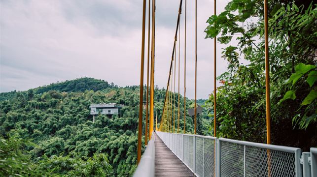 川西竹海景区紧邻平乐镇集镇区,位于沉寂而苍劲的大山之间。景区内竹林茂盛、怪石突兀、空气清新,可谓是“天然氧吧”。 在这里你可以随心漫步于林间曲径,也可以悠然坐卧于溪边石侧,陶醉在清心爽目的大自然中。 这里不仅有天然峡谷、竹林 、金鸡古桥、生态溪流等自然风光,还建设了仙侣牧云桥、玻璃栈道、川西竹海景区-高空观景平台等设施,是集旅游观光、休闲度假、户外运动为一体的竹海峡谷自然景区。 仙侣揽月桥(高空全景走廊)连接着景区海拔最高的两座山峰,跨度299米,宽2.5米,垂直高度150米。作为全球首座双层高空全景走廊,采用全通透设计,脚下通透如无物,似在半空中漫步,俯瞰十万亩竹海。茫茫人海,揽月相遇,蓦然回首,须臾千恒。卓文君司马相如浪漫爱情故事彷佛穿越时空与君相遇。在竹海峡谷之巅,亲近自然、放怀天地、洗涤情怀,拥有世间之自在!公告