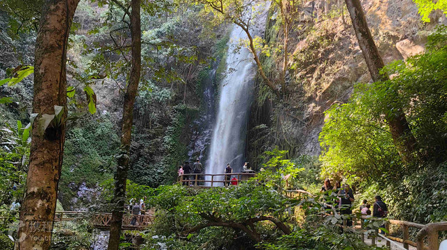 莫里热带雨林景区位于瑞丽市东北,莫里”是傣语,意为“美丽的瀑布”。这里以其秀丽奇异的自然景观和佛教圣地名闻遐迩。 温泉池附近有座金色的傣式塔亭值得一去,内有一块囤箩石,在它倾斜于地面的岩壁上嵌有一个巨型“足印”,趾掌清晰可辨,这就是在东南亚佛教界享有盛名的佛脚印,拿起相机拍照留念吧。塔亭后不远处建有大佛寺,每逢佛教节日,香客络绎不绝,可在此拜佛祈福。公告