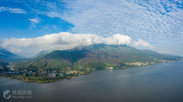 感受泸山的浓荫丛中隐有汉、唐、明、清年代修建的邛海湿地-光福寺、三教庵、蒙段祠、祖师殿、观音阁、王母殿、青羊宫、玉皇殿、五祖庵等10多座分别为儒教、道教、佛教所有的古刹。尽管教规、哲学思想等不尽相同,但却能在一座山中和睦相处上千年,各传各的教,这在全国也实属罕见。 它又名蛙山,位于西昌城南5公里,濒临邛海、拔地而起的泸山,以“半壁撑霄汉,宁城列画屏”的气势与邛海构成川西南一大景区之一,被誉为“川南胜境”。在西昌城南5公里的邛海南岸,是四川省级风景名胜区之一。这里海拨2317米。它东临碧波如镜的邛海,西濒蜿蜒秀丽的安宁河,北有历史古城西昌,南依巍巍耸立的螺髻山。山上古树参天,松树尢其茂盛,古人曾用“松风 水月”来描绘泸山邛海的风光,即泸山的松、安宁河的风、邛海的水、西昌的月。