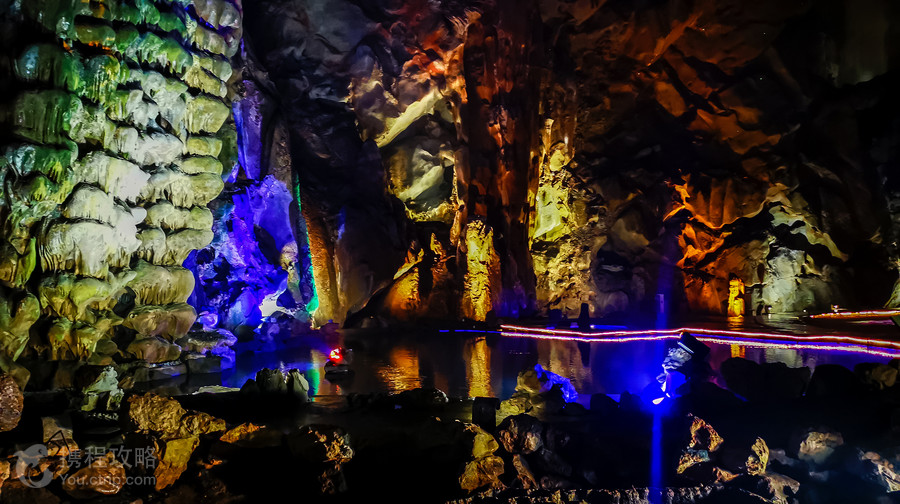 灵山洞位于浙江杭州,因灵山洞的风景绚丽多彩而得名。洞壁刻有“大明六年”字样,具有1500多年的历史。此洞为竖井式,高低相差109米,总面积4000多平方米。灵山洞分层有麒麟迎宾、水底洞天、赛昆仑、天柱厅、大云盆等五厅。