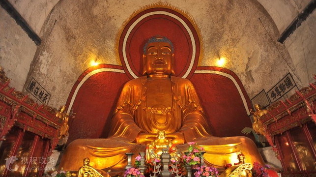 新昌大佛寺景区位于南明山侧,紧依着新昌县城。它不只是个寻常意义上的千年古刹,而是一大片开发成熟的旅游区。除了弥勒造像、高达5层的大佛殿,还有木化石恐龙园、双林石窟和射雕村等十多个景点,景观丰富。 进入景区入口往前不远,右手边便有岔路通往射雕村,村里的建筑都是按照《射雕英雄传》中的场景布置的。你可以走进杨铁心的老家牛家村、陆乘风的归云庄、丐帮轩辕台等,回味书中的情节。射雕村北面是木化石恐龙园,这片木化石林(硅化木)的树龄在亿年以上,如今还能清晰地看到当年被雷击、虫蛀的痕迹,是新昌宝贵的古生物遗迹,很值得一看。 由此往明镜湖方向走,继续参观双林石窟。这个石窟也是新造的,在半山腰的崖壁上。登上台阶,崖壁上是巨大的哼哈二将浮雕,双林石窟的石窟内有一尊卧佛,神态安详,四周的殿顶上是繁复的浮雕,很是精美。双林石窟有一个小平台,有石凳可以休息,在这儿俯瞰下面的明镜湖,远眺大佛殿,视野开阔。 在游览步道上远远能看到山中的绿树间有一笑逐颜开的弥勒石像,若是走到附近,你会发现露天弥勒一侧,还有六尊造型各异的小石雕弥勒,很多游客喜欢在此拍照留影。旁边的五百罗汉洞也可一并看过。右边较远的地方还有栖光净院、般若谷、地藏殿等景点,可一路走过去,绕到经典的大佛殿,或者直接从中间的主路爬上去,距离更近。 令人惊叹的是,它外面五层的木结构建筑和里面的石窟完美融合在一起,里面供奉着一尊高达16米的石弥勒像。塑像开凿于南朝,金碧辉煌,是江南早期石窟大佛,被誉为“江南第一大佛”,比四川的乐山大佛还早200年。大佛殿一旁的放生池边,有始建于隋朝的智者大师纪念塔。 新昌大佛寺景区西北还有千佛寺,有一千多尊形象生动的小佛像,历史比大佛还要悠久。景区门口的白云山庄是当地好的酒店之一,可考虑在此留宿,标间三四百元左右。
