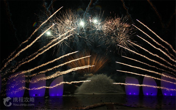 “日出东方”海之秀是一个大型多媒体水上演出秀,选址在奥林匹克水上公园目标塔南侧,可容纳观众2032人。“日出东方”海之秀演出舞台整体设计为风帆结构,两侧为帆型天幕,中间为巨幅水幕,以木质浮桥为舞台前景,与水云基地景色巧妙融合,与视频虚拟与现场实景相结合,运用全彩激光、音频影像、4D动画、喷泉、水雾、烟花、火焰等高科技与传统文化内容有机结合的大型跨媒体实景演出。公告