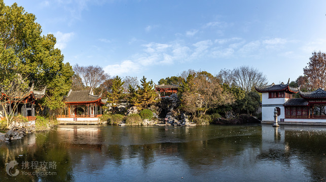 珍珠塔景园俗称陈御史府,在同里古镇内石皮弄16号,占地1.8万平方米。 由明万历(1573~1620)南京监察御史陈王道五世孙、清康熙三十九年(1700)进士陈沂震利用老宅重建,名“孚寄堂”。 2001年,开始修复,取名由陈王道嫁女演绎而成的《珍珠塔》故事——珍珠塔景园。景园由陈御史府第、陈家花园、祠堂、侍御坊等组成,东宅西园布局。 东宅座北朝南分两路。东路,仪门面西,前置左右旗杆,匾额“御史第”,折北依次为轿厅(即茶厅)、砖雕门楼“克遵儒风”、宏略堂、砖雕门楼“景星庆云”、兰云堂、东西双廊道、堂楼(又称绣阁)。从仪门正北进“荣庆”门沿曲廊往前,或从宏略堂前廊即进入西路,依次玉兰堂(又称花厅)、闻香读书楼(又称陈翠娥书楼)、辅房、厨房。两路间设备弄,各进均通备弄。 从厨房北出院墙到侍御坊,俗名陈家牌楼。坊面北临河,字额“清朝侍御”,系明万历皇帝朱翊钧赐书。坊与堂楼间以细砖照墙“恩荣”相隔。陈家花园内亭台楼阁,以清远堂为核心。堂面南掩映竹林间,北临池,四面廊窗,四望皆景。池东北枇杷园,古戏台与雅韵仙馆南北对峙,知音斋与闻韶亭东西相向。池东“水流云在”轩,轩东首廊桥凌波伸向南,折西沿廊至清远堂。西侧三曲桥向西南连接清远堂,桥北堍静卧“浮翠”画舫。轩东南出“吟碧”门入“茹古斋”小院。站在斋西廊,相偎相依的廊桥、三曲桥近在咫尺,这是苏州园林非常独特的构建。从院南“藏翠坞”门入竹林,出院西“饮绿”门即廊桥南堍。池北小兰亭俏立山顶,假山脚下植矮松数枝。临池西北景明轩,沿小路往南到绿秋亭。西是紫薇堂,院东南墙上装点“绿绮”半亭。出紫薇堂,环廊东通清远堂,南达碧筠山房、景园出口处“锦园”门。房、廊隐约在竹林。宗祠紧挨枇杷园东北,原名庞氏宗祠,建于民国13年(1924),由墙门、穿堂、享堂、寝堂四进建筑组成。寝堂左侧有洗心井,“洗心”源自将所谓违反族规的妇女沉入井中的非人举动。祠东南角另有两进七间附属建筑,为神堂和停柩房,供奉中华民族人文始祖轩辕黄帝,以及各姓氏祖先神位。茹古斋北,住宅与宗祠、花园间有小浜兜通外河,浜底置船坊,浜上架拱桥。这里是宅院与花园间后部通道,闻香读书楼、厨房均有通浜小门,知音斋和水流云在轩北的“东溪小筑”也通浜。前部从玉兰堂院过“撷秀”门,即入茹古斋小院。整个景园的空间组织和景观安排过渡自然,叠山理水,营造出自然意趣的“城市山林”。