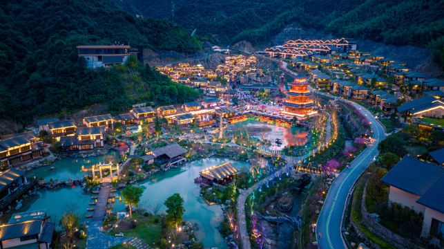 葛仙村度假区位于江西省上饶市铅山县,2016 年 6 月由鑫邦集团投资建设,目前已累计投资超15.69亿 ,背靠千年道教名山葛仙山,定位以打造“江西旅游新地标”为目标。项目分为两期,规划建筑面积约30万平方米,项目核心景区面积650亩,包括集散中心区、葛仙村度假区、天镜台景区三大板块,未来还将继续延山谷向外发展。 葛仙村度假区围绕葛仙山景区打造,以仙人葛玄在葛仙山的修行事迹为线索,融合道家的文化内核和要素,结合古典山水画境和道家审美再现了汉末仙翁葛玄在此生活修行的山村景象,以水、竹、村为创意元素,致力打造一个集生态旅游、休闲度假、商务会展和道文化体验的天然圣地和仙村。 葛仙村度假区景点介绍 圆方·天圆地方 隐于山林 圆方的命名取自道家“天圆地方”的理念。圆方中的铜铸罗盘,由名家倾力创作,讲述道家对天地至理的理解和精深造诣。整体设计以“消失的建筑”为理念,外立面采用的是玻璃镜面和竹子,远眺这些玻璃镜面上呈现的都是山间自然景色,就像隐藏在山林之间,若是不注意,难以发现这栋建筑,更难看到建筑后面所隐藏的世外桃源。 众妙阁·玄之又玄 亦真亦幻 众妙阁是景区的制高点,采用古代建筑结构,主楼高26米,为三层四柱的纯木结构。阁这种建筑,大都是用于藏书、供奉神明的,这也给阁赋予了更多的文化意义。 到了晚上,这里将上演隆重庄严的众妙阁秀,现代科技灯光与古建筑的结合如梦似幻,给人带来极具视觉冲击力的体验。 文化 源远流长 宗祠广场主要由中心位置的醮坛和葛翁宗祠组成。关于醮坛是冠娶礼祭的地方。就是古代冠礼、婚礼、祈祷神灵的祭礼仪式的地方。在宗祠广场的中心区域会上演一些传统民俗文化表演。 洗尘门·寒潭碧水 洗去凡尘 月影之下,寻道者行拱手礼,拜入道家门。以雾帘装置打造的“洗尘门”,光影唯美,仙雾缭绕,为远道而来的人洗去俗世凡尘。 ·茶园演绎 流光溢彩 茶园位于圆方上方的一片山坡,茶树依地势层层叠叠栽种,每到采茶时节,游人采茶的身影也是仙村一道独特的风景。 夜晚,茶园摇身一变,全息投影技术打造身姿缥缈的仙人抚琴场景,科技灯光与森雾给游客带来仙雾缭绕流光溢彩的游玩体验。 水幕电影·气势磅礴 震撼人心 位于众妙阁的水舞台,每晚都会上演一场场真人演绎的大型实景水幕电影,水幕与光影交融,带来流光溢彩的视觉盛宴,演员随着时而激荡时而舒缓的音乐起舞,演绎出一幕幕跌宕起伏的盛世传奇故事。 仙音坪·仙音绕梁 不绝于耳 自古以来,葛仙山的茂林修竹自成一景,而仙音坪就是以“竹”文化为主题建造的音乐广场,它主体建筑由山间修竹经过自然烘干、防腐处理制成,同时整体的建筑呈现的也是竹叶的形象,经常会举行各种音乐活动和文化演出。 中国镇物文化馆·镇物文化 历史悠久 中国镇物文化馆位于灵宝仙街入口处,墙体采用马头墙的形式,颇具徽派建筑风格。馆内为游客展现中国自古流传的镇物文化,设有有展览区、零售区、工坊区,让游客在观赏古代镇物的同时深入理解镇物文化。