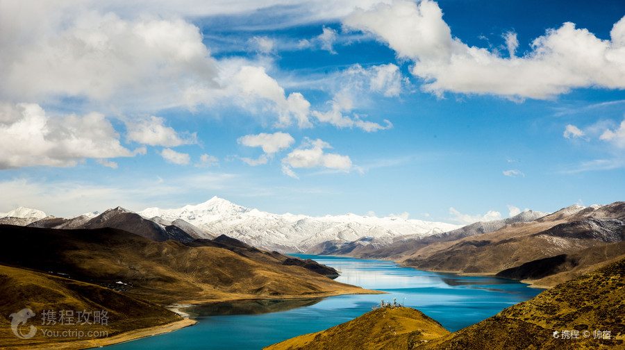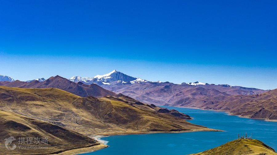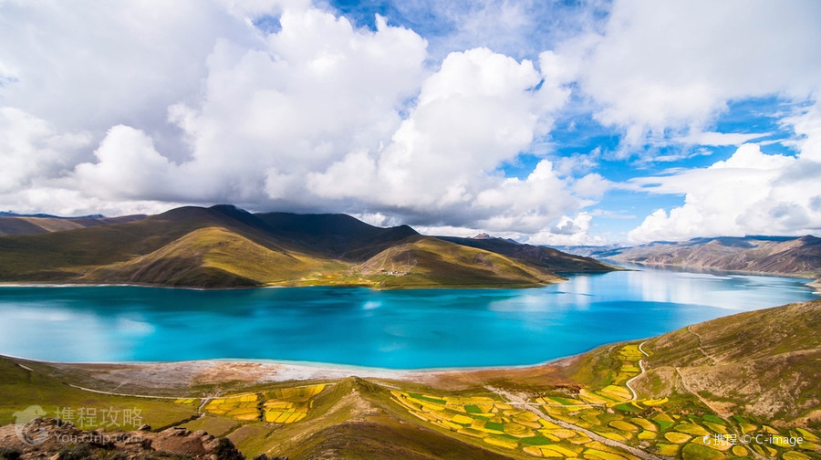 羊卓雍错,藏语意为“天鹅池”,是西藏三大圣湖之一,也称羊卓雍湖(当地人通常简称为“羊湖”),因为藏语“错”就是“湖”的意思。地理上属于山南地区的浪卡子县。湖面海拔4441米,湖岸线总长250千米,总面积638平方千米,湖水均深20-40米,是喜马拉雅山脉北麓较大的内陆湖。羊湖岔口较多,像珊瑚枝一样,因此它在藏语中又被称为“上面的珊瑚湖”。 湖内分布有10余个小岛,大的可容五六户居住,小的则仅有百余平方米。湖中盛产细鳞鱼、西藏裂尻鱼、高原裸鲤等。这里还是藏南较大的水鸟栖息地,每逢冬季群鸟南徙至此,在湖岸及湖心岛一带,天鹅、水鸽、黄鸭、鱼鹰以及斑头雁都非常多。 这里远观比近触要漂亮许多,翻越5030米的岗巴拉山口后,沿公路一直向下到湖畔需要大约30分钟,这一路是欣赏湖泊的好角度,一路上有多个观景平台,可驻足停留拍照。