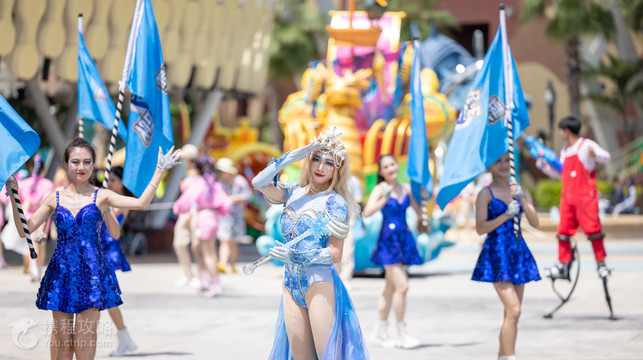 海南海洋欢乐世界游玩攻略 必打卡项目推荐 中国唯家加入EEP (欧洲濒危物种繁育计划)与EAZA (欧洲动物园与水族馆协会)的乐园,所有大型海洋哺乳动物均为馆生后代或馆养10年以上非野捕,并按照国际标准提供优渥的生活环境及动物福利 南海列车: 南海列车 推荐指数:5颗星 位置:三沙之城 国内第一条浅海运行的单轨观光列车,运营环线全长3.3公里,体验沿海“低空飞行”的喜悦。 海南海洋欢乐世界 1. 南海秘境 推荐指数:5颗星 位置:探索港湾 七个主题展区,共有43个展池,可观赏学习种类超过1500、总数超40000只的各类水生生物。 2. 海鸥展翅 推荐指数:4颗星 位置:海南生态海岸 结合了海鸥翱翔的理念与波浪式的运动模式,让游客们体验到翱翔的自由与欢乐。 3. 海龟沙滩 推荐指数:5颗星 位置:海南生态海岸 海龟沙滩是开展海龟救护、人工繁育的科普展馆,分为水池区与沙滩区;平均水深达3米,誉为省级海龟救助繁育基地。 4. 海南生态海岸 推荐指数:5颗星 位置:海南生态海岸 近距离接触海南特有的热带雨林动物,是海南生态多样性动植物的展示中心。 5. 丛林漂流 推荐指数:5颗星 位置:海南生态海岸 坐在漂流筏内沿河道顺流而下,通过水底的挡板来制造汹涌的水波,整个游玩过程可实现对狂野速度的追求。 6. 铁锈山激流 推荐指数:5颗星 位置:冒险海洋 沉浸式体验激流勇进,感受蓝海护卫队和海洋污染的战斗激情与刺激,激起浪花四溅,蔚然壮观。 7. 极限坠落 推荐指数:5颗星 位置:冒险海洋 以每秒10几米的速度上升至60米高空,随即又快速向下跌落,带来震撼的心理感受。 8. 杰克海战 推荐指数:4颗星 位置:冒险海洋 战船设有八挺水枪,可在船与船几船岸边之间互相射击,是一项家庭户外亲子活动配备。 9. 鳐鱼礁 推荐指数:5颗星 位置:冒险海洋 造型宛如一条游弋的鳐鱼,近千吨水体为多种生物提供宽敞的生活空间,可零距离触摸海中飞翼。 精彩演艺: 1. 摩托艇滑水竞技赛 演出地点:探索港湾 2. 搞怪先生嘉年华 演出地点:探索港湾主干道 3. 南海美人鱼传说 演出地点:南海秘境 4. 蓝海旋律音乐喷泉 演出地点:炫彩辰光广场 5. 守护海洋花车水秀 演出地点:炫彩辰光广场 6. 压轴旋律舞曲 演出地点:炫彩辰光广场 7. 桑妮剧场 演出地点:冒险海洋 餐饮必吃推荐: 1. 水母餐厅 特色美食:花样寿司、西红柿牛腩面 位置:三沙之城 花样寿司 2. 海港餐厅 特色美食:小船长鲜虾芝士堡套餐、经典香辣鸡腿堡套餐 位置:探索港湾 小船长鲜虾芝士堡套餐 3. 南海秘境•海底餐厅 特色美食:主题定制 位置:探索港湾 海底餐厅主题定制 4. 玳瑁餐厅 特色美食:粤式叉烧饭 位置:海南生态海岸 粤式叉烧饭 5. 北极圈餐厅 特色美食:小龙虾意大利面套餐(套餐配可乐、蔬菜沙拉)、招牌榴莲披萨套餐(套餐配橙汁、蔬菜沙拉)位置:冒险海洋 招牌榴莲披萨套餐 6. 阿唐冰淇淋 特色美食:海南椰奶清补凉、双球冰淇淋 位置:冒险海洋 双球冰淇淋