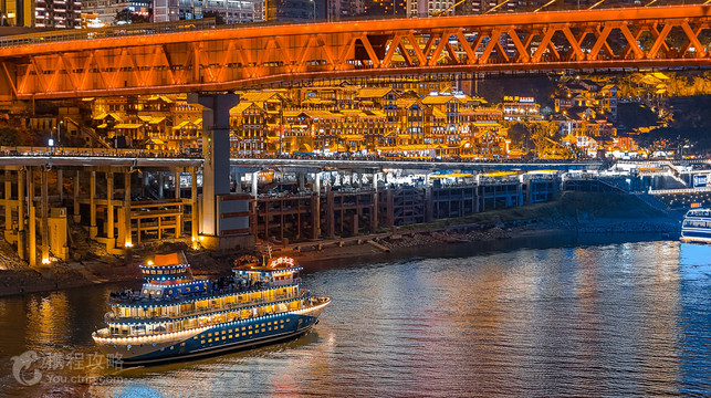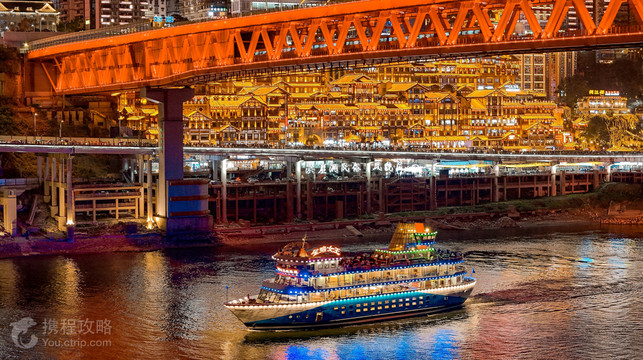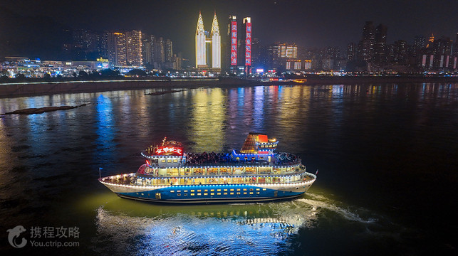 重庆两江游-金碧系列——金碧女王号是重庆两江游游船中功能设施设备先进,服务内容人性化,涵盖巴渝历史文化元素丰富多彩,彰显重庆山城民俗风貌显著的一艘观光游船。游船设有水上餐厅、水上舞台、水上茶室、水上棋牌室、空中酒廊、KTV包房、VIP包房及全景观光平台,是接待企事业单位,高、中端会议及举办游船婚礼,生日、公司庆典、朋友聚会的好选择。