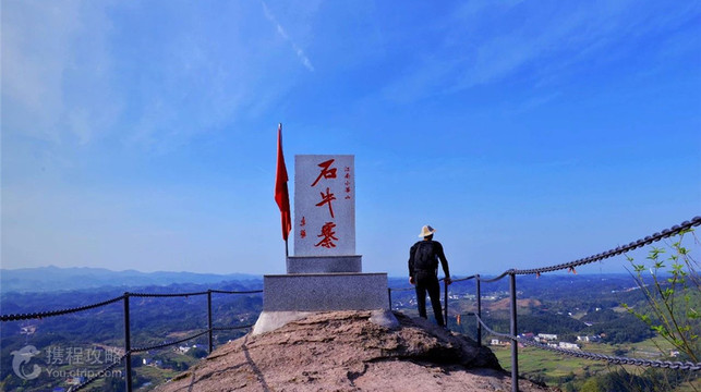 浏阳石牛寨风景区位于捞刀河上游,浏阳市社港、龙伏两镇交界处,紧靠凤凰峡和周洛古文化村。海拔523米,方圆约10平方公里。因其雄踞于绿色田野之上,陡峭而险峻,体形状如牛,首南尾北,而名浏阳石牛寨风景区。据湖南省历史学家经过考察和鉴定,确定是明代浏阳48寨中惟一剩下的一寨。旧时《湖南通志》、《长沙府志》皆有“石牛寨……峭壁天悬,窄径一线,上有平野方塘”、“土人御乱,立寨此山”之类的记载。浏阳石牛寨风景区地势险峻,群仞壁立,窄径悬天,奇险程度让人咋舌,当地誉为“小华山”。浅红色的顶部,深褐色的石壁,显出几分神秘。东北靠石柱峰下的万福岭,余下三方皆平卧视野之下,纵横阡陌,冉冉炊烟,十分开阔壮美。牛头接近凤凰山脚,造成峡谷北高南低开阔坡地。坡地北边的高坡上,散落许多花岗岩巨石,远看似喂老牛的千年草垛。一旦走入巨石之间,让人遐思万千,流连忘返。公告