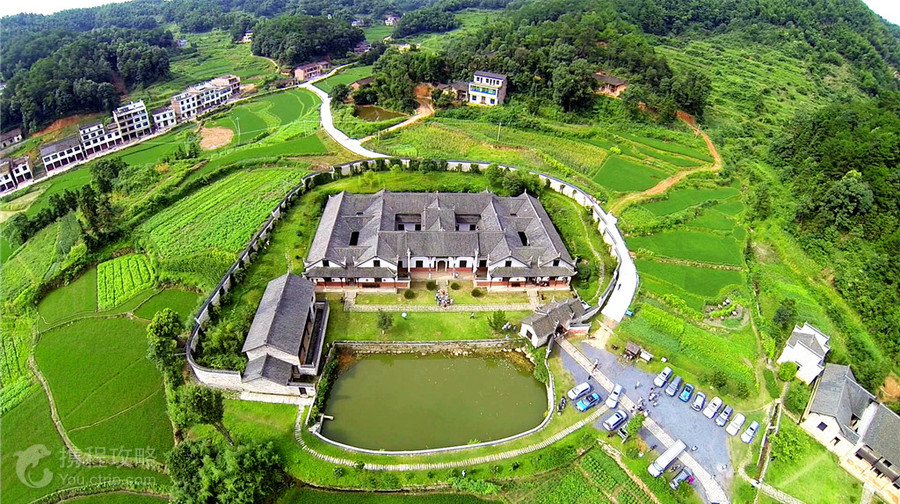 曾国藩故居富厚堂,又名毅勇侯第,是曾国藩的侯府,座落在位于湖南娄底市双峰县东部的荷叶镇富托村,与湘乡市、湘潭县、衡山县、衡阳县毗邻,总占地面帜四万多半方米,主体建筑近一万平方米,是典型的沿中轴线对称的明清回廊式建筑群体。富厚堂座南朝北,背倚的半月形鳌鱼山从东南西三面把富厚堂围住。从远看去,富厚堂好似坐在一张围椅中。周围自然环境优美,后山上树木茂密,古树参天。门前是一片较开阔的平地,平地中有小河向东流去,平地四周峰峦叠嶂,群山环抱。 富厚堂占地四万余平方米,建筑面积9202.86平方米,为土石砖木结构,回廊式风格,内外群有八本堂、求厥斋、旧朴斋、艺芳馆、思云馆。八宝台、辑园、凫藻轩、棋亭、藏书楼等各种建筑,当年正门上悬挂着“毅勇侯第”朱地金字直匾,门前花岗石月台上飘扬着大清龙凤旗、湘军帅旗、万人伞等,景象颇为壮观。富厚堂原称八本堂,取曾国藩“读书以训诂为本,诗文以声调为本,事条以得欢心为本,养生以少恼怒为本,立身以不忘语为本,居家以不晏起为本,作官以不要钱为本,行军以不扰民为本”的家训。公告