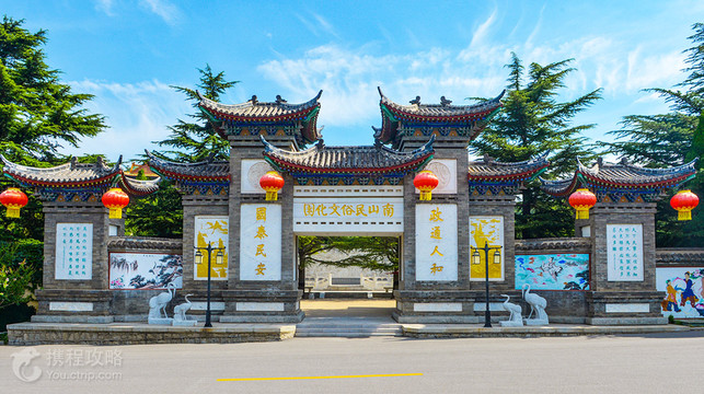 龙口南山旅游景区为国家5A级旅游景区,分为宗教文化园、历史文化园两大部分。其中景区内南山禅寺、香水庵等为晋、唐遗迹,石泉寺(今南山禅寺)有“黄县三观八寺之首”的美誉,在此之上修复重建的南山各处名胜,可谓圣地重光。南山大佛和南山药师玉佛更为千年古刹再添新颜,打造了一处祈福圣地;以历史文化为经、吉祥文化为纬,按朝代顺序建设的历史文化园,融中华上下五千年建筑美学、历史文化、吉祥文化、民族文化和园林艺术于一体,宛如一部鲜活的中国通史,全面展现了中华文明多姿多彩,是青少年研学旅行、校外教育、亲子体验、社会实践、户外拓展的理想之地。打造了“福寿南山。公告