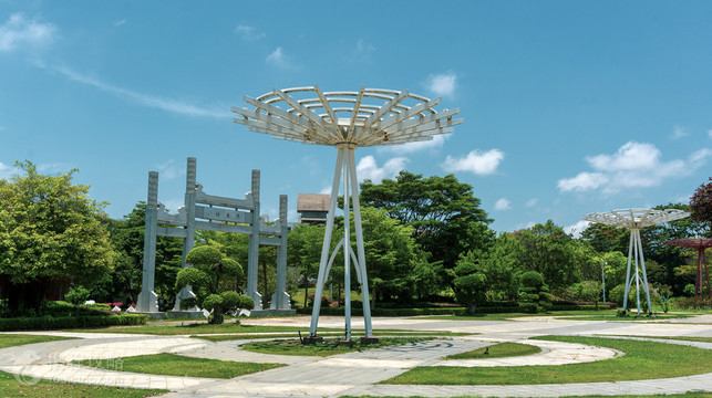 北海园博园位于北海市银滩大道以北、南珠大道以东地段,占地75.67公顷,是2014年第四届广西园博会的举办地。 园区以"花海丝路、绿映珠城"为主题,鲜花争艳,绿树成荫,碧水环绕,既突出广西特色,又彰显北海个性,打造出"一轴三环"、"水陆双游"、"三海呼应"、"双塔遥望"和"扬帆起航"的景观格局,充分展示了广西园林建筑的精华,集中体现了广西园林园艺的高水平。 北海园博园内的广西14个城市展园,园园有特色,个个是亮点,充分展示各城市的独特风韵,宛若14颗璀璨的明珠镶嵌在园博园,展现出大美广西深厚的文化底蕴和优美的生态环境。 山川水系,花草树木,建筑小品,营造文化与自然共生的园林景观。鲜花盛开,绿树环绕,流水飞瀑,宛如仙境,人们在园博园流连忘返。公告
