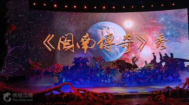 神游华夏演艺——闽南传奇,是山东华夏文化旅游集团斥巨资在福建厦门倾力打造的惊世巨作,实景搬进室内,有山有水有树木、有房有船有码头,令人叹为观止,剧场上方数万平米的巨大穹顶为实景遮风挡雨又拓展了表演空间。众多外媒惊艳其丰富的想象力及世界较早创立水陆空360度全方位演出和观看方式,可以媲美国际级任何高端演艺秀,彻底打破拉斯维加斯演艺航母的神话,成为世界演艺历史上一次颠覆性的革命。 大型室内实景秀《闽南传奇》分为六幕,故事散点式展开,横贯舞台的巨大山体在震耳欲聋的音乐中向两侧裂开,首先吸引眼球的是大、小恐龙的幽默表演和雨林冰川的变化喻意海进海退、潮起潮落的沧桑巨变,栩栩如生的机械白鹭展翅9米迎面飞来喻意鹭岛的形成;音乐变换之中水面升起城墙,激烈的海战、寸土不让的攻防大战,使人感受到海峡两岸同仇敌忾的骨肉情、共筑盛世华夏的中华梦;深情的下南洋歌声从浪花中飘来,讲述着亲人的别离、故乡的思恋,下南洋途中遇到的火山喷发、岩浆倾泻、盗匪洗劫、海啸狂风、人与大自然的博弈惊心动魄,后续而来的闽南儿女为海上丝绸之路开商埠建码头付出的艰辛,用血汗谱写了爱拼才会赢的奋斗史;灯光聚焦,特技演员从30米的高空跳水刷新了世界演艺相关的记录,将场内气氛推向了高潮,让观众屏气凝神、兴奋惊叹。