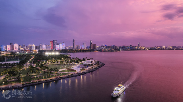 夜游海口湾游船沿滨海大道海岸线行进,途径海口秀英港、保利中央海岸,经由恒大美丽沙海域驶入海口湾。在楼宇灯光秀所营造的旖旎氛围中,世纪大桥、海口云洞图书馆、天汇老码头等地标性景观跃入眼帘,晚风拂过,大海与夜色交相辉映,滨海城市的魅力尽数展现。公告