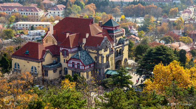 青岛德国总督楼旧址博物馆又叫迎宾馆,这是一座德国古堡式建筑,其内部为宫廷式木质结构,如今依然可见到的内部陈设。总督楼位于信号山公园南麓,目前为青岛高级别的接待宾馆。博物馆的建筑造型与色彩很特别:黄色的墙面上不规则地镶嵌着花岗岩石料作装饰,红色为主的屋顶中又安插了蓝色和绿色的屋顶,屋檐上伸出一只德国古代战舰上的装饰品——诺曼底龙头,站在楼前仿佛来到了童话世界。博物馆的外部色彩丰富,特别适合拍照,但其内部禁止拍照。在这栋建筑内,你可以感受到德式设计的严谨,比如所有木头家具的木板接缝间连刮脸刀片都插不进去,一个世纪过去了,都没有出现过质量问题,楼内的暖气到现在依然可以使用。而地上铺的厚软地毯,陈设着的水晶灯、水晶镜子、象牙钢琴,都可让你感受到欧洲宫廷般的氛围。 楼内共有四层,底层是半地下房间,原为总督仆从的用房,现在开了家咖啡室,四层是办公区不对外开放,所以真正供游客参观的只有二层和三层。因为从大门进去就身处二层,所以习惯上又把二层称为一楼,把三层称为二楼。二层主要是总督招待宾客的地方。餐厅里摆放着水晶镜子;大厅顶部悬挂华丽的水晶灯,一侧墙角的壁炉上嵌着绿色玉石;宴会厅里有架珍贵的象牙钢琴,吊灯上镶嵌满宝石;二层还有路通向个很大的花房,所有陈设可谓富丽堂皇!三层主要是总督的卧室和办公处。上楼看到的第一个房间是桥牌室;往前有育婴室,里面所有的物品都没有棱角,吊灯的灯光很柔和,不会伤害孩子的眼睛;总督夫妇卧室内也摆放着水晶镜子,值得注意的是一台枪橱,只有钥匙孔却没有把手,需要两只手用力转旁边的两块木头机关才能打开橱门,可以防止孩子误开——即使有了钥匙也因力气小拧不开机关。这些设计都细致巧妙而贴心。景点背后便是信号山公园,可一并游览。登上山顶,能俯看迎宾馆和青岛市,眺望海景,视野开阔。