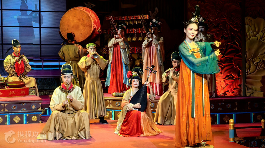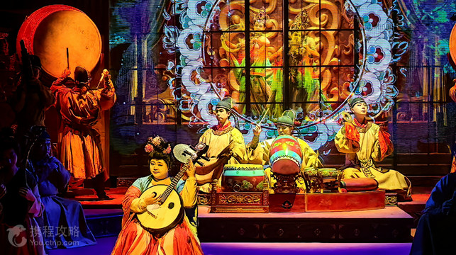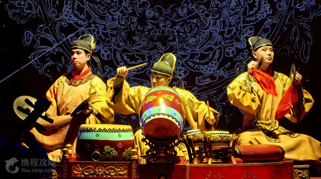 大唐芙蓉园内唐代宫廷燕乐演出《鼓》,以沉浸式舞台剧的叙事方式,讲述唐长安一天赋少年历经考验成长为一代传奇鼓师,在玄宗千秋寿宴上大放异彩的故事。剧目通过强烈代入感的情景、具有矛盾冲突的剧情、丰富饱满的人物塑造,引领观众浸入皇音雅秀的华美梦境中,品味盛唐宫廷音乐魅力。“西安鼓乐”是我国境内迄今发现并保存完整的大型民间器乐乐种之一。它曲调丰富、形式严谨、风格鲜明,被誉为“中国古代的交响乐”。由于传承方式非常原始,千余年来,乐曲韵味全由民间音乐大师、乐工、艺人口传心授至今,饱经沧桑,经过生死存亡的重重灾难,“西安鼓乐”为我们留下了一段中国民族音乐的真正历史。如今,东仓鼓乐社在大唐芙蓉园内演出、传承,让中国、让世界的朋友去揭示、领悟、传奇、神秘的鼓乐。大唐芙蓉园唐代宫廷燕乐演出《鼓》,传承千年文化内涵,展现千百年时空中的古曲风采,使中国风格、中国皇家气派的古典音乐,得以还原、复兴。千古遗音梦,梦回盛唐人,唐代宫廷燕乐《鼓》,与你不见不散!