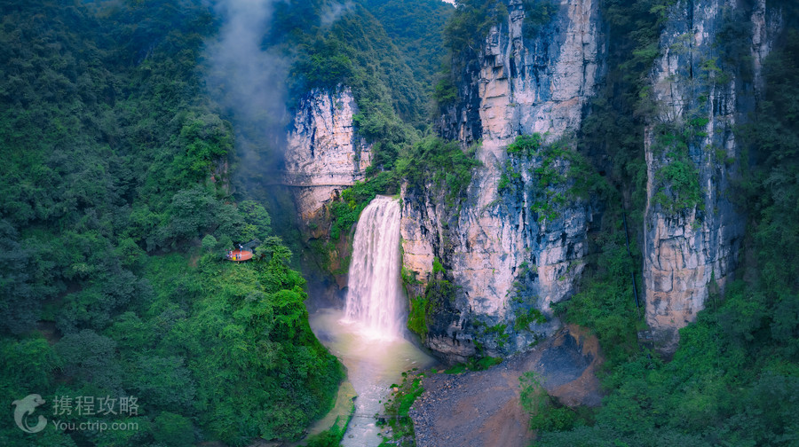 飞水谷风景区位于距中国历史文化名城凤凰县仅10公里的廖家桥镇。 这里有美丽的大峡谷,有高悬百米的大瀑布,有空中栈道,有历史遗迹古代打米机,有隔河相望的避祸洞与土匪洞。让你在参观景点的同时体验到挑战自然的乐趣,是观景、旅游、科学探险之地。在这安静祥和的角落也曾经遭遇过战火的袭击,年久失修的“土匪洞”用一根木头支撑着门洞的重量,里面灶台、仓库及防卫用的碉堡无声的诉说那一段历史。公告