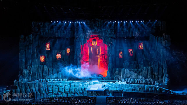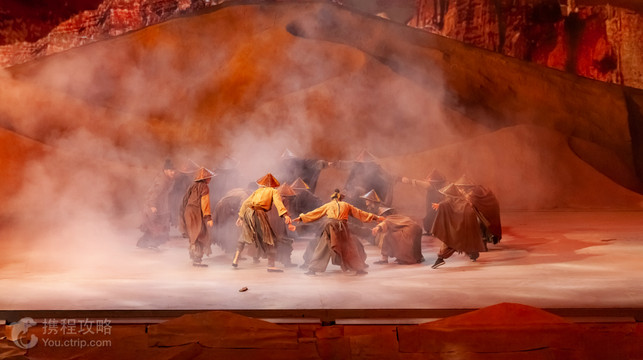 会跑的实景演艺《驼铃传奇》秀,首创旋转行走式观众席,将现代高新科技与驼道丝路的传奇历史文化经典相融合,给观众带来超凡的视觉体验和心灵震撼,以正能量传播西安辉煌历史时期的文化传奇。西安华夏文旅大剧院作为华夏文旅西安度假区项目的标志性建筑,设计为一座长142米,宽128米,高约50米的大型椭球体建筑物,可容纳3000人同时观看演出。剧场中央巧妙设计并修建一座可移动观众席,打破了世界单一舞台演出模式,通过旋转行走式看台将观众送至观演位置,带给观众全新的视听享受。《驼铃传奇》秀已经成为世界演艺闪光灯下中国身影的杰出代表,是世界娱乐行业艺术和科学高标准的一张靓丽名片。会跑的实景演艺《驼铃传奇》秀,由华夏文旅集团董事长夏春亭担任总策划、总编剧、总导演。在编撰《驼铃传奇》秀的过程中,以“一带一路”为主线,深入挖掘大唐传统文化,追寻驼队丝绸之路上的踪迹,以正能量传播西安辉煌历史时期的文化传奇。整场演艺分为《送君千里》、《狼道遇险》、《异国风情》、《祥雨洗尘》、《迎郎归来》、《华夏盛世》剧情,以“好看、好听、好玩”为宗旨,打造出一部面向大众、雅俗共赏、喜闻乐见、大快人心的演艺。演出情节设计以一对新婚燕尔的夫妻依依惜别开场,讲述西行驼队一路经历火山、雪崩、风沙、大漠等自然险阻以及狼群突袭,九死一生;随后满载货物返程,途中祈福巴米扬,巧遇天降圣水,在亲人的期盼中安然回到长安。期间穿插描述与体现异域风土人情,整场演出跌宕起伏,为观众带来震撼、刺激、唯美、欢快的视听感受,使用发明专利多达47项,20峰骆驼、30匹苍狼在其中也有惊险刺激的表演。《驼铃传奇》秀带你穿越大漠风沙的豪迈与苍茫,倾听丝绸之路上悠远驼铃的清脆与神秘,品味异域风情,见证荣耀大唐,聆听华夏千年回响。第一幕:送君千里广运潭的老码头西连罗马,东接三江,是盛世大唐抹不掉的缩影。由此踏上丝绸路成为大唐血性男儿的狂热追求,驼工一路艰辛,勇往直前,福祸相依,丝路上多少圆梦人富甲一方,多少遗骨却也水远留在了丝绸之路上,换来了乡土的繁荣与大唐的昌盛。路漫漫,人心牵,别时泪,湿满襟,送君千里终有一别,大唐别情尽在这里。第二幕:狼道遇险西域景致风情万种,丝路一路惊奇万分。西域地区是丝路的必经之地,滑稽的阿凡提为醉人的风光涂上神秘的色彩,但狼道却是驼队无法躲开的鬼门关。驼工们不畏凶险,知难而进,与狼争道,与天争命,连猴子看了都会落泪,驼队在一路历经火山、雪崩、强盗、死亡大漠等天灾人祸的重重挑战,给后人留下百折不挠的传世故事。第三幕:异国风情驼队历经重重磨难终于抵达繁盛的古罗马,许多兄弟驼队早己经云集街头,市集上熙熙摧攘,丝绸、瓷器,各色货物琳琅满目,盛装的罗马少女用曼妙的舞姿将驼工吸引至露天舞台,驼工精湛的中国功夫、杂技与蓝眼睛斗士的绝活同台亮相,可谓中西合璧,精彩绝伦,在异域展示不一样的华夏风情。第四幕:样雨洗尘驼队满载返程货物和归途的喜悦,一路来到梵衍那国,幸运遇见西行取经的大唐高僧玄奘一队人马,两队人马相伴而行,好不惬意。驼工亦顺道到巴米扬石窟朝拜,在佛前许愿,保佑驼队一路平安,祈祷早日还乡与亲人们团聚。巧逢天赐祥雨,冲刷掉满身尘气,让归乡途上有好运相伴,驼队信心满满,欣喜上路。第五幕:迎郎归来驼道是欧亚大繁荣的连接丝路,驼队则是丝路上一把连接友谊的木梭。一代代驼工九死一生踏平了驼道,而故乡,就是驼工们一路上归心的甜梦。满载着收获和希望,喜悦与思念让回家的驼铃声分外清脆,秀儿与姐妹们早在灞桥的古树下盼郎归,一年又一年,一日盼一日,终有一天,看,他们回来了…第六幕:华夏盛世驼队马帮是打通与联结欧亚各国的友好使者,丝绸之路促进了各国的交流,发展了欧亚经济与国力,也增强了各国友谊与关系,更迎来大唐盛世的繁荣与昌盛。万国来朝,好不热闹,共庆友谊,欢天喜地,大唐皇帝祝愿丝路繁荣,华夏昌盛。