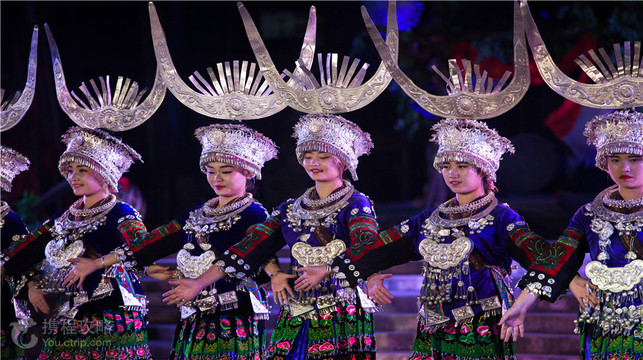 《美丽西江》是一台大型原生态苗族情景歌舞剧,分为四个章节,该剧全景展现了苗族生活的过程。一场“色香味全”的民族歌舞表演,看得人意犹未尽。在西江千户苗寨,《美丽西江》展现出的苗族歌舞,有故事、有文化、有特色,古朴、粗犷、原汁原味的风格,尽情的表达出苗家人的真挚、纯朴。 1枫木化蝶 相传蝴蝶是从枫木芯中诞生,蝴蝶飞到池塘边与水泡结合,产下13个蛋,由吉宇鸟孵化成为12生肖和一个美丽的苗家姑娘,人类由此诞生,蝴蝶也就成为苗族蝶母和神的化身。 02迁徙 苗族是个古老的民族,曾经生活在长江中下游地区,在远古部落战争中失败以后,为了生存,在漫长的迁徙岁月中,苗家人的足迹遍布了华夏大地的山山水水。苗族重祭祀,崇拜先祖,敬天地万物有灵。每当祭祀的时候,在鼓藏头——也就是祭司首领的带领下,祭拜先祖神灵,祈求风调雨顺!人畜兴旺!幸福平安!铜鼓舞它是以鼓手有节奏的击鼓和舞蹈动作,队形变化的一种舞蹈。舞姿粗犷灵活,舞步矫健有力,情绪饱满,充分体现了苗族人民豪放,朴实的民族性格!传说苗家先祖的灵魂寄居在鼓内,敲响铜鼓就能让祖先听到祭祀的祈祷。 03千古习俗 爱情是人类永恒的话题。苗族人提倡婚姻自由,鼓励小伙子大胆追求心仪的姑娘,这才有了在农闲时节的传统社交节日,如农历4月的爬坡节,6月的马郎节等,男女游方嬉戏,若是真心相爱,即使两家不够“门当户对”,但苗族青年也会以偷亲的方式,完成自主婚姻。在提倡自由恋爱这方面,浪漫的苗族可比其他民族早了很多年! 04苗乡锦绣 苗族服饰多达一百三十多种,可以说世界上没有哪个民族像苗族这样,把妇女服饰看得如此重要和神圣。她们把图腾戴在头上,把无字史书绣在衣裳。美丽的苗家阿妹身着盛装,向您款款走来。她们头上闪烁的银饰,随着轻快的舞步,发出炫目的光芒,与多彩的盛装一起演绎着苗家山河的美丽! 《美丽西江》大型歌舞晚会还为现场朋友安排了互动环节,让观众可以上台与苗家阿妹共同参与游戏,获胜方之后将获得一份精美礼品。