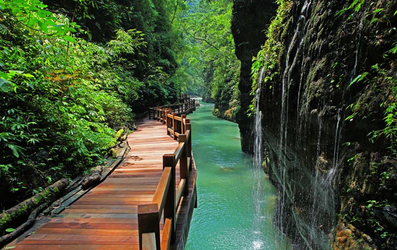 黑山谷风景区(Black Valley),国家AAAAA级旅游景区,森林公园,地质公园,中国休闲名山,中国绿色低碳旅游休闲胜地,亚洲大中华区具魅力风景名胜区,重庆市“巴渝新十二景”,重庆市环保示范景区。 景区地理坐标为东经106°58'26",北纬28°51'46",地处云贵高原向四川盆地过渡的大娄山余脉,位于重庆市万盛经济技术开发区黑山镇境内,距重庆城区63公里,景区面积100平方公里,山顶与谷底高差1200米,峡谷长13公里,河谷两岸坡度70~80度。 这里属四川盆地亚热带湿润季风气候区,气候温和,降雨丰沛,四季分明,无霜期长,冬暖春早,初夏多雨,夏热伏旱,秋多绵雨,冬季云多日照多,同时具有地区差异大的山区气候特色。年平均气温为18.1℃,全年无霜期339.2天。年平均降雨量1277毫米,年日照时数平均为1101.6个小时。 重庆黑山谷风景区由黑山谷、万盛石林两个景区组成,有峻岭、峰林、幽峡、峭壁、森林、竹海、飞瀑、碧水、溶洞、仿古栈道、浮桥、云海、田园、原始植被、珍稀动植物等各具特色的景观。景区山高林密、人迹罕至,保存着地球上同纬度为数不多的亚热带和温带完好的自然生态,森林覆盖率达97%,负氧离子浓度高达11万个/立方厘米,如同一个天然大氧吧,被誉为“中国养生峡谷”。是目前重庆地区原始生态保护为完好的自然生态风景区,被专家誉为“渝黔生物基因库”、重庆市独特的“生物基因库”、“西南神农架”。