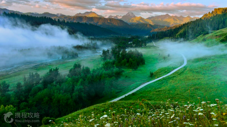 库尔德宁景区--世界自然遗产地,国家级水利风景区,国家AAAA级景区,位于巩留县东南林区,距县城55公里2000年4月被国 务院批准为西天山自然保护区,拥有天山特有物种--雪岭云杉,是全球雪岭云杉和中亚野果林的生境区和起源地,是“天山绿谷,雪岭云杉的故乡”。这里更是世界自然遗产地、国家4A级景区、天然氧吧,被评为中国十大森林之首的负氧区,伊犁哈萨克自治州的州鸟、州树、州花都出于此地。与此同时也是中国美术家协会写生创作基地、中国登山训练基地。 库尔德宁在当地牧民是“横沟”的意思,这是一条南北走向的山间阔谷,总面积1176平方公里,平均海拨1500米左右,特殊的南北走向,使得这里冬暖夏凉,气候宜人。这里既有北方的博大粗犷,又有江南的妩媚清秀,是旅游避暑的胜地。这里有白雪皑皑、雄踞于群山之上的雪峰喀班巴依峰,海拔4257米,是西天山著名山峰之一,喀班巴依峰左侧,那就是密布着雪岭云杉的山峦,随着山峦的走势自然形成的一处隐形卧佛。睡佛头枕日出,脚踏夕阳,体态匀称,神情安详,是大自然的杰作,这里森林、草原、雪山、溪流、峡谷、瀑布构成了景区壮美的画卷。这里是天山山脉森林繁茂的地方,拥有单位蓄材量罕见的云杉森林资源,完整的原始森林类型及植被是整个天山森林生态系统尤为典型的代表。据初步统计,这里有维管束植物1594种,野生脊椎动物223种,堪称是欧亚大陆腹地野生生物物种的“天然基因库”。 游览线路: 区间车线路: 景区游客中心(乘坐区间车)-》遗产中心 (步行,参观展厅)->喀班巴依峰(远观)->铁桥(步行)-天山睡佛(远观)->云杉王(乘坐观光车)->云上草原(步行木栈道下山) ->餐厅(步行,绿之谷度假村或快餐厅用餐)->遗产中心停车场(步行)返回游客中心(乘坐区间车) 自驾车线路: 景区游客中心 ->库尔德宁景区的中沟入口 ->+里画廊 ->蜂香驿站 -喀峰大本营 ->齐梦德观景台 ->阿尤赛观景台 ->徒步云杉王 ->徒步天山睡佛(远观)->徒步云上草原公告