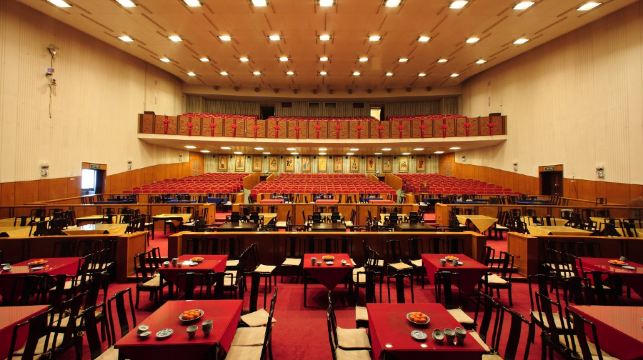 北京梨园剧场由北京京剧院与前门饭店联合于1990年10月创建,是茶座式剧场。来这里看京剧就像逛故宫、吃烤鸭一样,是来北京不可错过的特色体验。 剧场由演出厅、展示厅和展卖厅3部分组成。演出厅由剧场舞台和观众席组成,舞台台高8米,宽12米,深7米,两侧有戏剧家翁偶虹撰文、刘炳森书写的对联;观众席周围有8个大型京剧脸谱和14出戏目的京剧人物彩绘屏风,设3个票区共800个席位,与传统老戏园习俗相近,观众可在欣赏戏曲表演的同时品尝到各种北京小吃和名茶。展示厅内有京剧艺术200余年发展史的陈列。展卖厅内可选购京剧工艺品和纪念品,并可着戏服,勾画脸谱摄影留念。公告