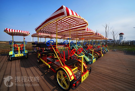 黄金海滩位于江苏启东市圆陀角旅游度假区东侧,总面积2700余亩。这里东临黄海,南濒长江,拥有丰富的野生动植物资源和良好的生态环境,2011年被评为国家AAA级旅游景区,2017年被评为江苏省省级湿地公园。景区位于江苏省东端,是长三角地区较早迎接日出的地方,每逢旭日东升,霞光四射,瑰丽雄浑,整个海滩犹如铺满金沙,“黄金海滩”由此得名。 江海交融,湿地广袤,水美物丰,黄金海滩旖旎多姿的原生态景观、丰茂多彩的动植物,构成了中国东部沿海地区一道独特的风景线。集生态湿地保护、科普教育、休闲度假于一身,可以开展文蛤采摘、生态垂钓、科普教育等众多旅游活动。无论青少年科普教育、团队户外拓展,还是全家度假游乐、情侣浪漫表白,这里都是荡漾着鲜活气息的滨海度假之地。公告