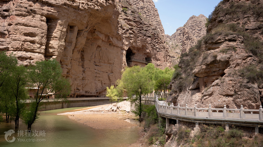 位于刘家峡水库上游,永靖县西南寺沟峡黄河北岸。在南北长2公里的陡峭峻险的红砂岩悬崖上,石窟神龛鳞次栉比,栈道凌空,雄伟壮观,是甘肃三大石窟、我国五大石窟之一。 炳灵寺早前称“唐述窟”,是羌语“鬼窟”之意,唐代称“龙兴寺”,北宋称“灵岩寺”,明永乐年后,称“炳灵寺”,又名“冰灵寺”。炳灵藏语为“笨郎”,即“十万佛”之意。 炳灵寺石窟,始建于西秦建弘元年(公元420年),从十六国时代起,历经北魏、北周、隋、唐、宋、元、明各代,已有1600多年的历史。西秦建都临夏期间,国王御驾亲临石窟,挥毫题词,真迹尚存于岩壁之上。自公元420年凿窟起到宋代,石窟对汉传佛教、净土宗、华严宗和禅宗的影响较大,元末明初,藏传佛教中的黄派(格鲁派)传入炳灵寺。 炳灵寺石窟在承袭前代民间艺术的基础上,吸收了外来佛教艺术,以崭新的姿态、简洁的手法,创造了生动的雕塑和绘画艺术,其浮雕佛塔和密宗壁画可与莫高窟和麦积山石窟齐名。 石窟分上寺、洞沟、下寺三处,以下寺较为壮观。它们分布在长200米,高60米的悬崖上。炳灵寺石窟现存窟龛196个,石雕像694身,泥塑82身,壁画900多平方米。较大的唐代弥勒坐佛高达27米,较小的雕像高10厘米。其中,西秦开凿的有2窟1龛,北魏开凿的有8窟25龛,北周的有2窟,隋代的2窟,唐代的有20窟113龛。 唐代作品艺术成就相当高,当时僧人达到3000多人。该窟中的西秦建弘元年(公元420年)名僧法显的墨书题记,是国内石窟中保留较早的纪年题纪,对全国其他古老石窟的断代提供了标识,具有十分重要的历史价值。 窟龛造像和壁画以169号自然窟大坐佛以及崖面中所有的众多中小型窟龛构成主体。169号窟古称唐述窟,现称“天桥洞”,高15米、深8米、宽20米,为已知我国开凿较早、保存较好的洞窟。窟内有佛龛、石雕、石胎泥塑三类造型。171龛,位于石窟悬崖上,有唐代石胎泥塑的弥勒佛大坐像一尊,依山雕凿,高达27米,雄浑庄严。窟中西秦《文殊菩萨问疾图》,是我国目前所见时代较早的一幅维诘经变图。原16号窟,现归位在石窟群对面睡佛殿内,长8.6米的泥塑炳灵寺卧佛,是北魏时期的一尊卧佛,具有非常重要的研究价值。高25厘米的唐代侍女造像,是我国现存石窟像中较为珍贵的一尊,充分体现了盛唐风貌。 炳灵寺入口处悬崖旁边伫立着峻峭的姊妹峰,周围有鸳鸯洞、药水泉等胜境,山青水秀,峰险石奇。