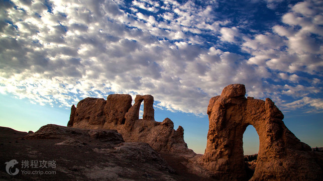 交河故城位于吐鲁番市区西侧约10公里处,是大约公元前2世纪到公元5世纪由车师人开创的城市,南北朝和唐朝时十分繁荣。后来由于连年战乱,古城被废弃而成为一座废墟。目前这座古城是我国保存两千多年完整的都市遗迹,非常值得前来参观。故城的面积较大,南北长1600余米,东西宽处约300米,分为寺院,民居,官署等部分。古城里的建筑都是用黄土夯成的,十分有特色。而如今这样土黄的壮观废墟也格外有一座历史的沧桑感,适合拍照摄影。参景区没有明确的路线,在景区内漫步观赏、拍摄即可,一般2小时左右为宜。古城的布局大体分为三部份,一条长约350米,宽约10米的南北大道把居住区分为东、西两大部分。大道北端有一座规模宏大的寺院,并以它为中心构成北部寺院区。城北上还建有一组壮观的塔群,可能是安葬历代高僧的的塔林。东南方有一座宏伟的地下宅院,顶上有11米见方的天井。据考察推测,可能是安西都护府的住所,后为天山县的官署衙门。西部有许多手工作坊。大道两侧是高厚的土垣,垣后是被纵横交错的短巷分割的“坊”,“坊”内有居住遗址和纺织、酿酒、制鞋等手工作坊。另外,古城的东侧有曾经的军营,剩下的是古民居,各种功能一应俱全。公告